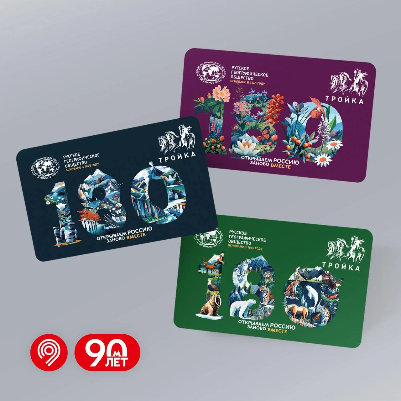 На картах изображены природные символы нашей Родины, собранные в число «180». Купить «Тройки» можно на стойках «Живое общение», во флагманских магазинах на станциях «Маяковская» и «Трубная» и на маркетплейсах.