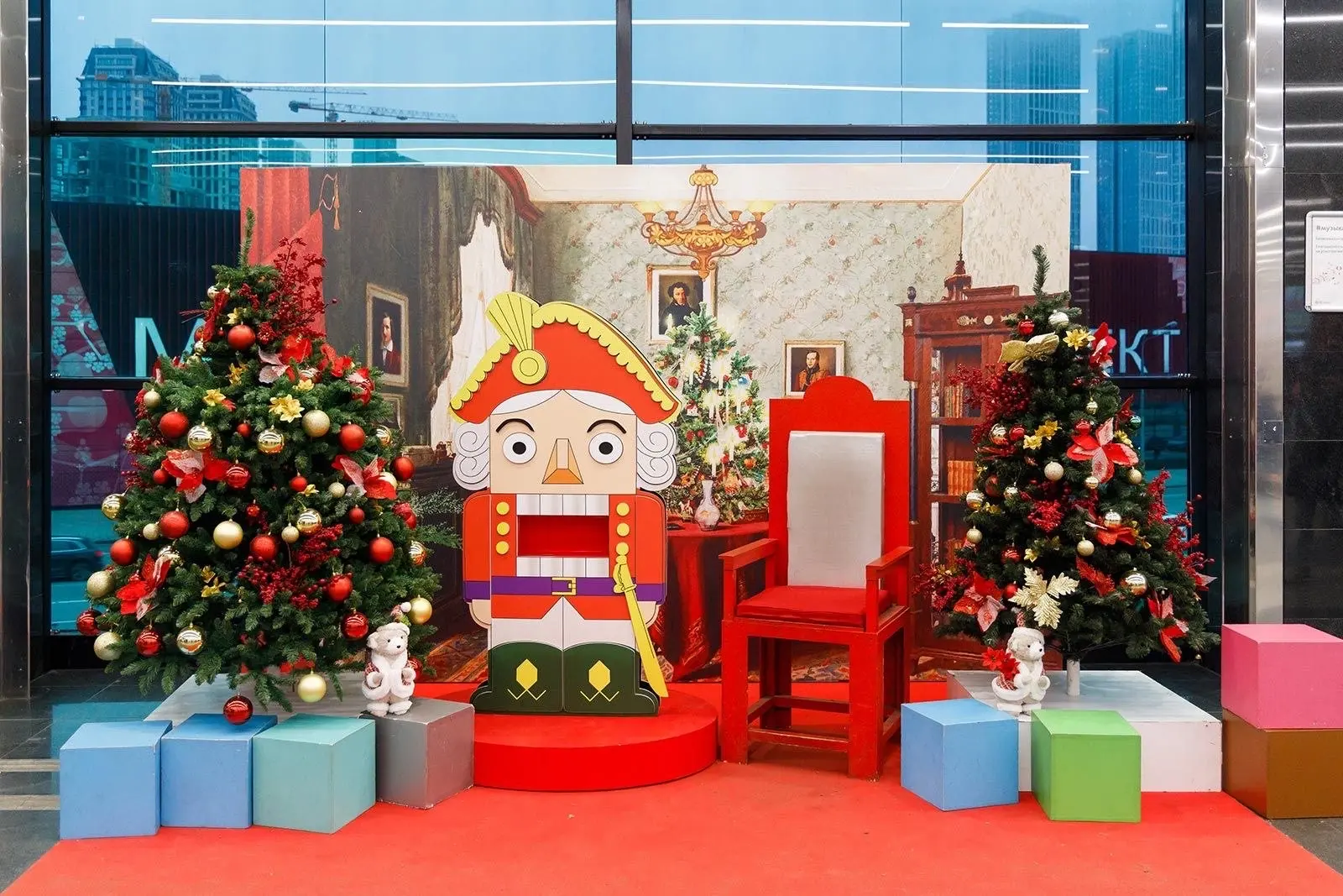 🤭 На Мичуринском проспекте появилась фотозона в стиле новогодней сказки с фигуркой Щелкунчика, на Маяковской – «Резиденция Деда Мороза».