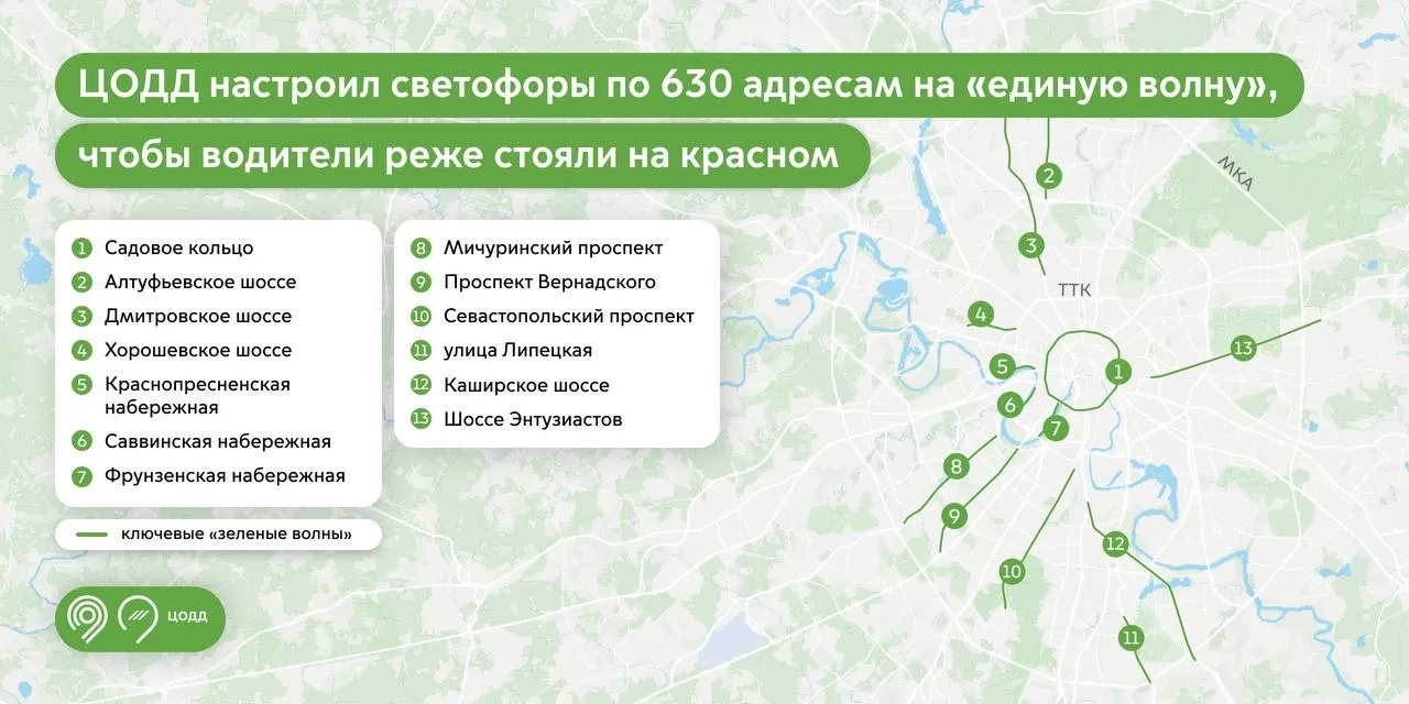 🚦 630 светофоров в Москве настроили на единую волну