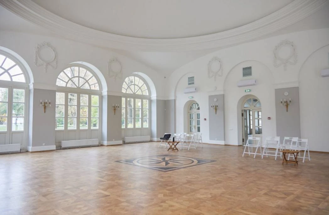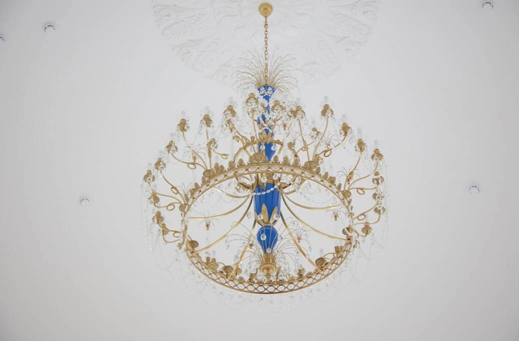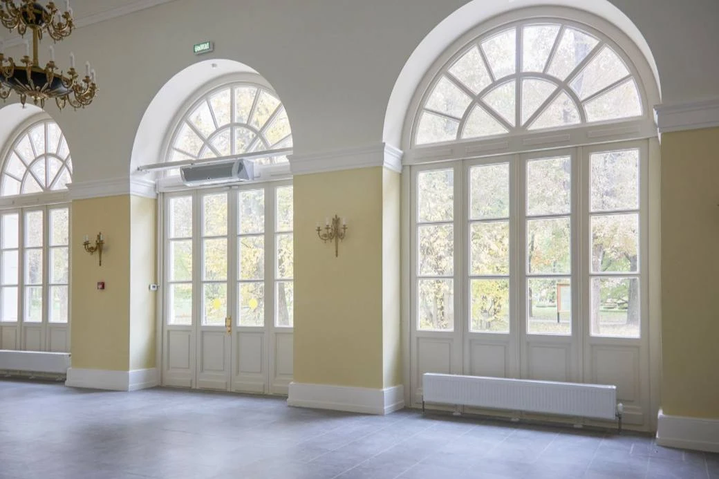 Внутри здания установили филенчатые двери и уложили наборный паркет с розеткой в виде розы ветров. Люстры и бра изготовили по историческим аналогам.