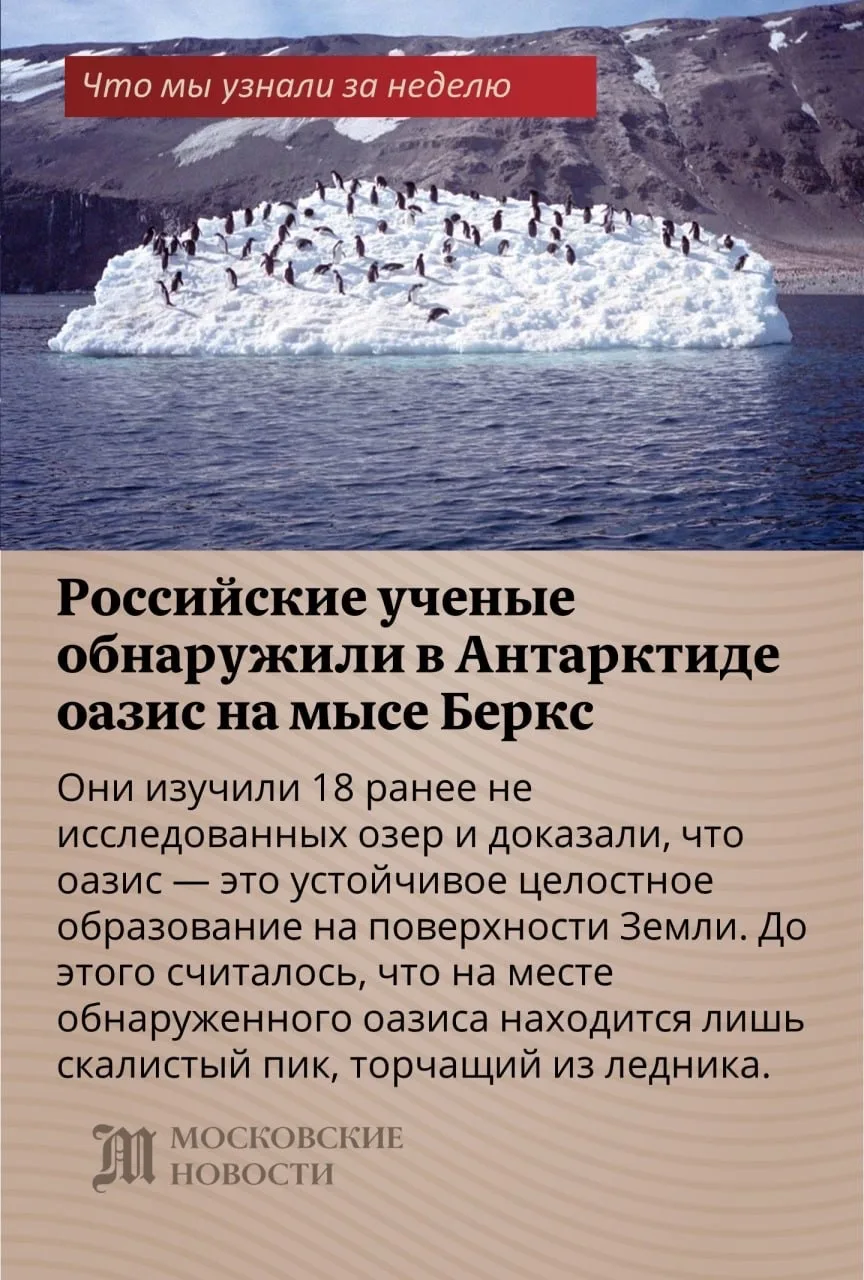 🔻Российские ученые обнаружили в Антарктиде уникальный оазис: главное о новом географическом открытии.