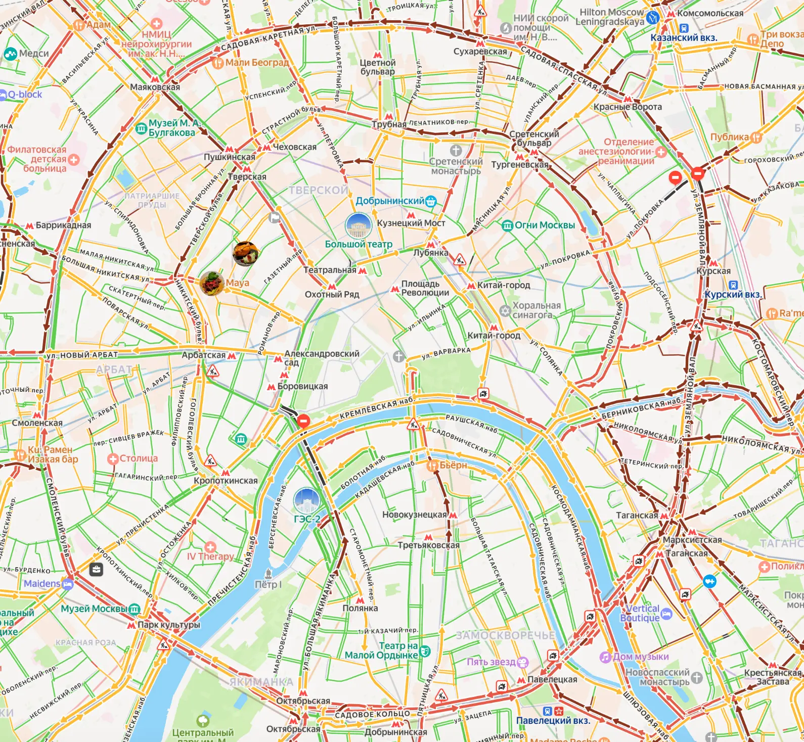 Движение закрыто на Покровке, внешней стороне Садового кольца в районе Земляного Вала и на Конюшковской улице перед площадью Свободной России.