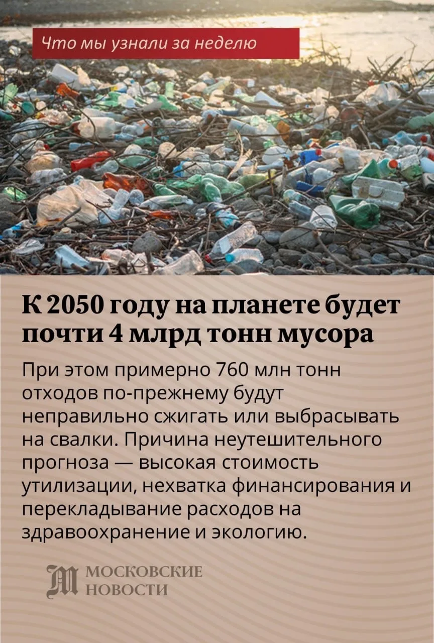 🔻К 2050 году на планете будет почти 4 млрд тонн мусора.