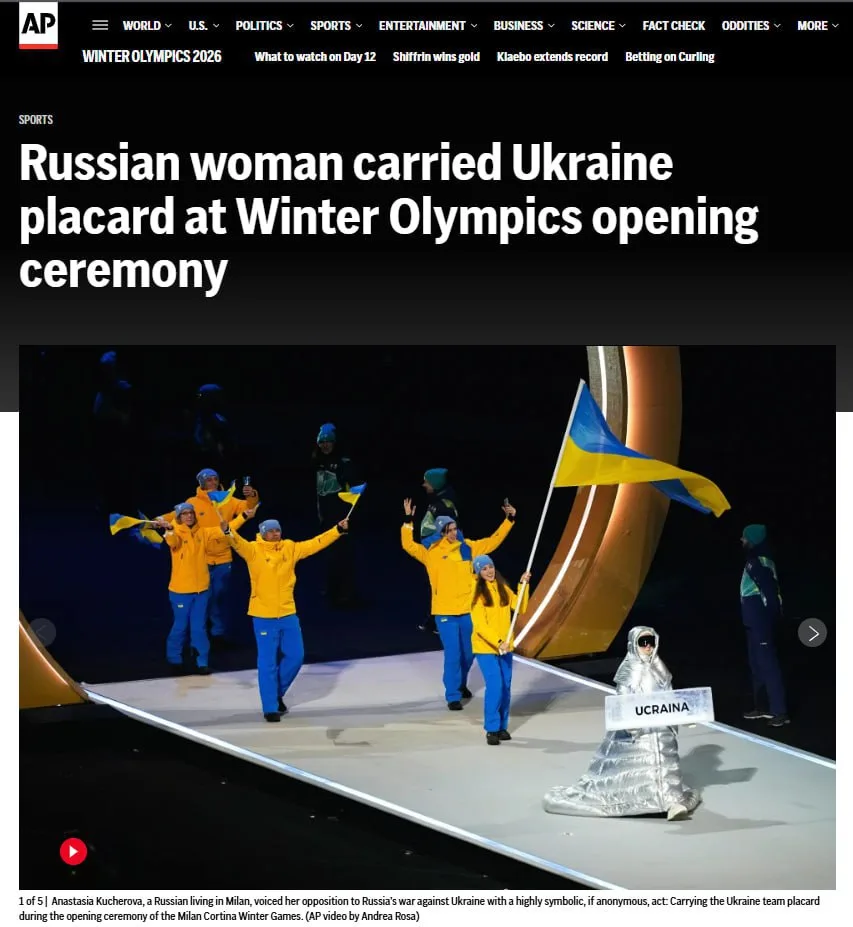 Так заявила уроженка РФ Анастасия Кучерова, которая несла табличку украинских спортсменов на открытии Олимпиады. Девушка уже 14 лет проживает в Италии. Своим действием она хотела показать, что «не все люди думают одинаково».