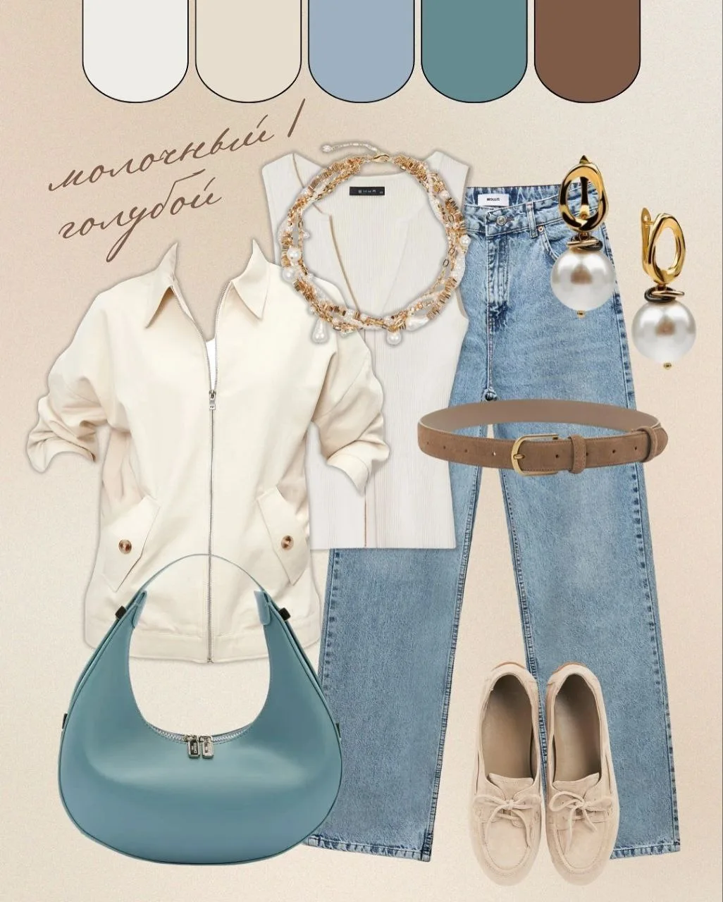В галерее привела примеры стильных сочетаний с голубым: обращаем внимание на форму каждого элемента. Ведь если не использовать что-то интересное, то легко скатиться в офисные образы