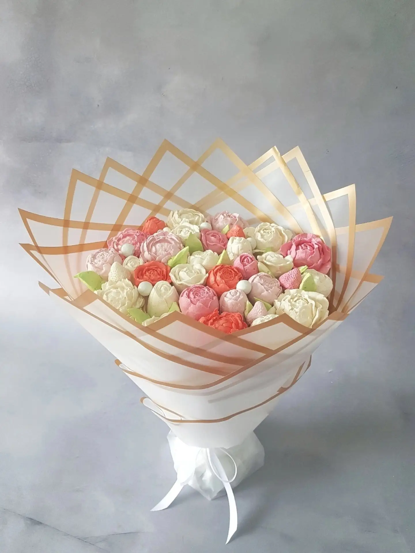 Одна мастерица из запрещённой в России соцсети делает вот такие "букетики" и даже рецепт теста и список ингредиентов выкладывает.