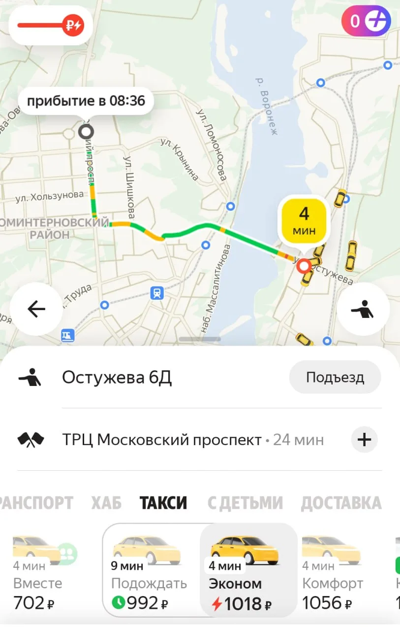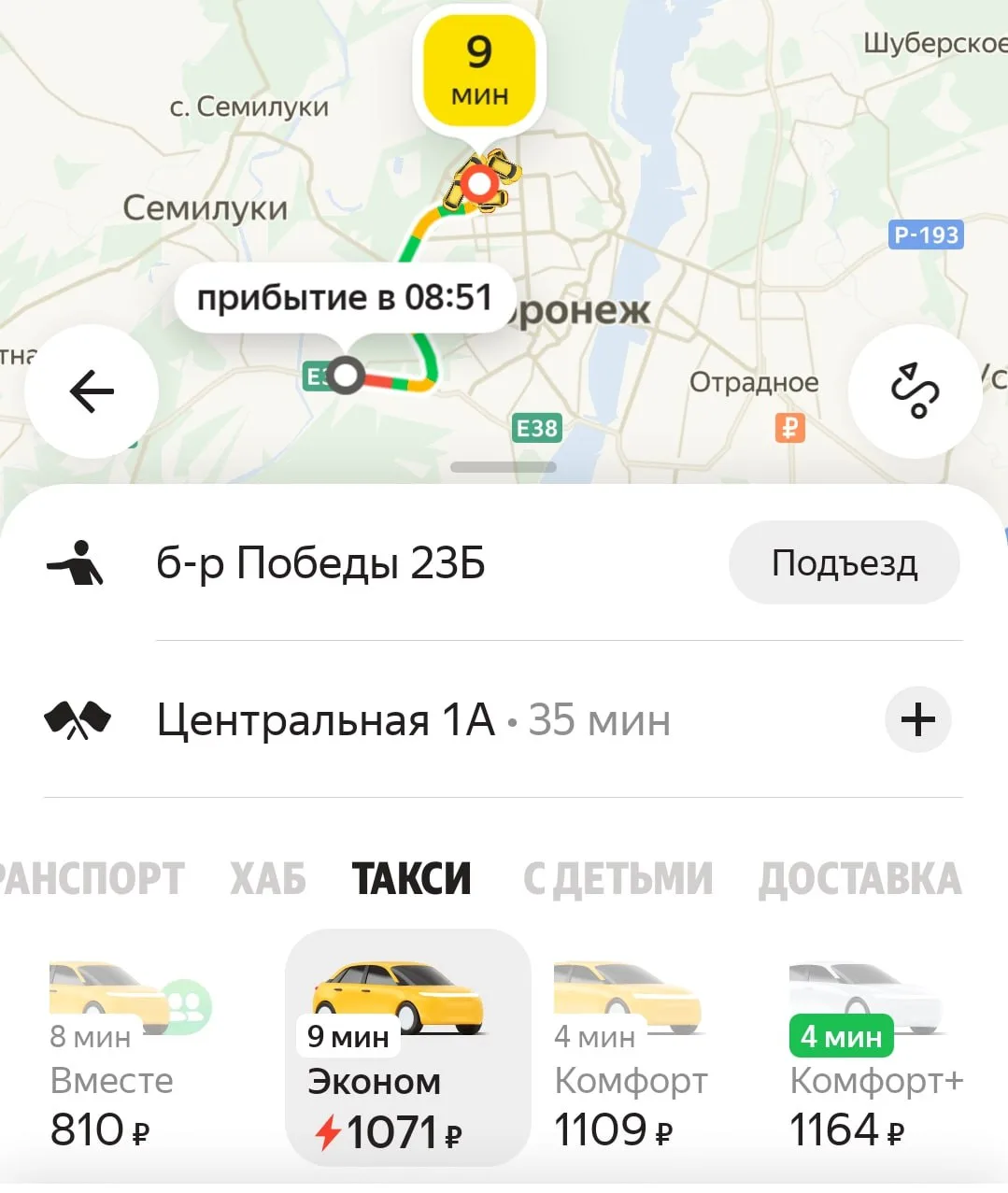 Чуть дешевле стоит доехать из Северного до главного корпуса ВГУ в центре города. Поездка обойдётся в 941 рубль.