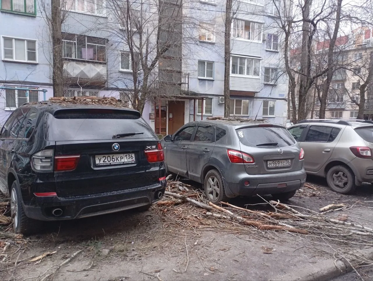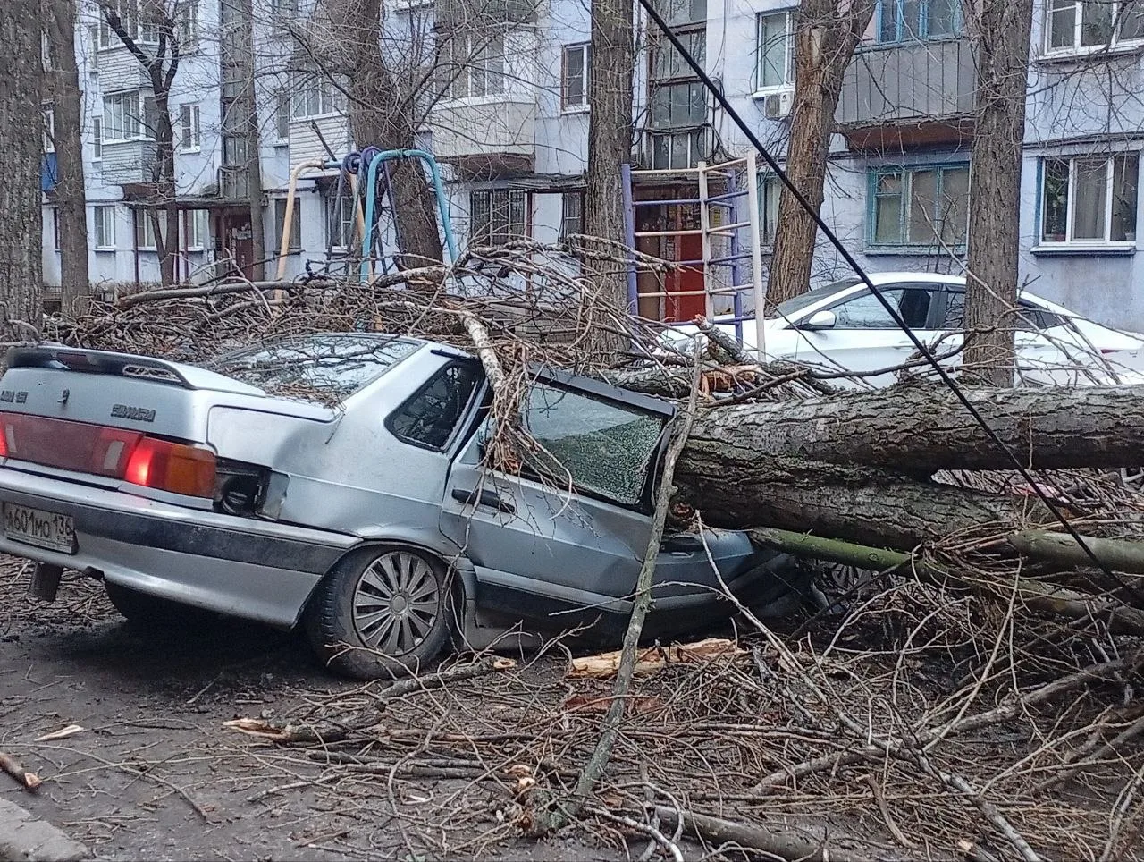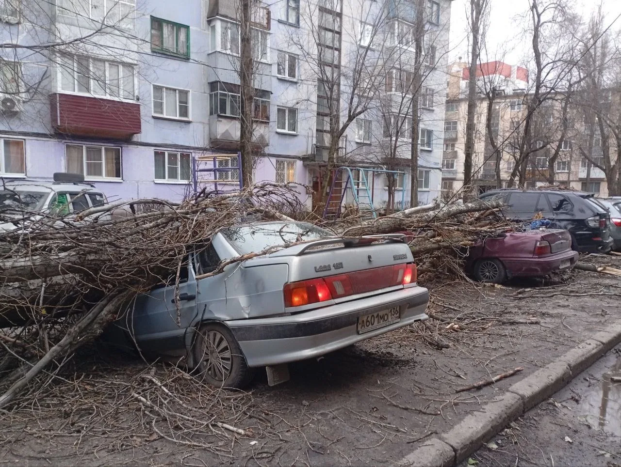 😱 Штормовой ветер повалил дерево прямо на машины в Воронеже