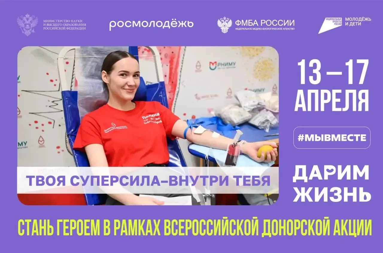 С 13 по 17 апреля по всей стране пройдет масштабная акция «#МЫВМЕСТЕ | Дарим жизнь». В университетах России откроются донорские пункты, где каждый из нас может совершить маленькое чудо.