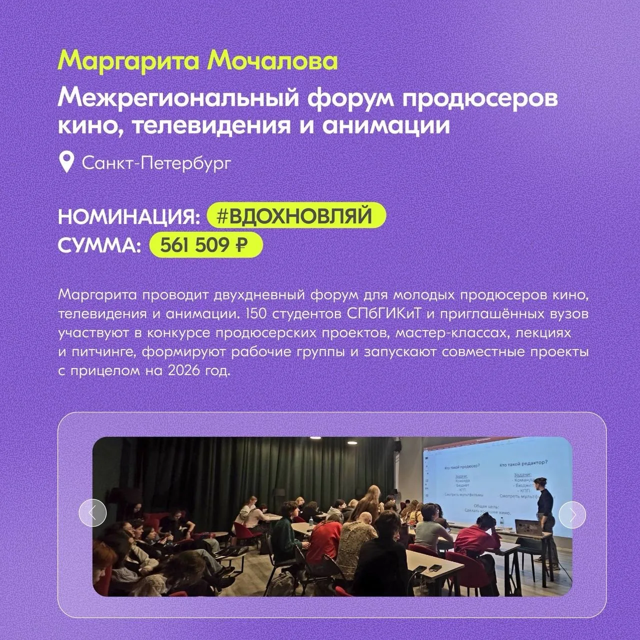 📌В карточках собрали вдохновляющие кейсы победителей, которые уже реализуются в регионах. Смотри, вдохновляйся и помни: твой проект может быть следующим!
