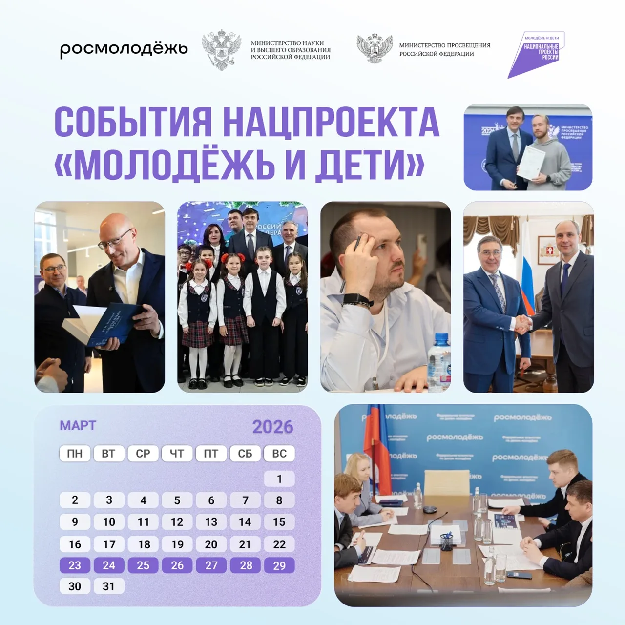 Обсудили промежуточные итоги реализации национального проекта «Молодёжь и дети», который был запущен по поручению Президента. Проработали год. Есть понимание, что можно и нужно улучшить. Какие новые проекты должны появиться. Фокус — на работе с ребятами, оказавшимися в непростой жизненной ситуации, и поддержке молодых семей.
