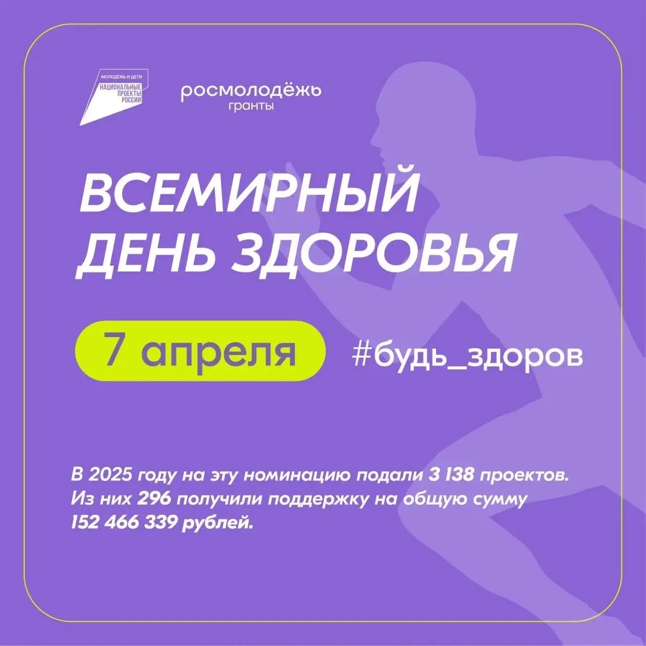 В прошлом году инициативы в номинации #будь_здоров от Росмолодёжь.Гранты получили поддержку на сумму более 152 миллионов рублей!