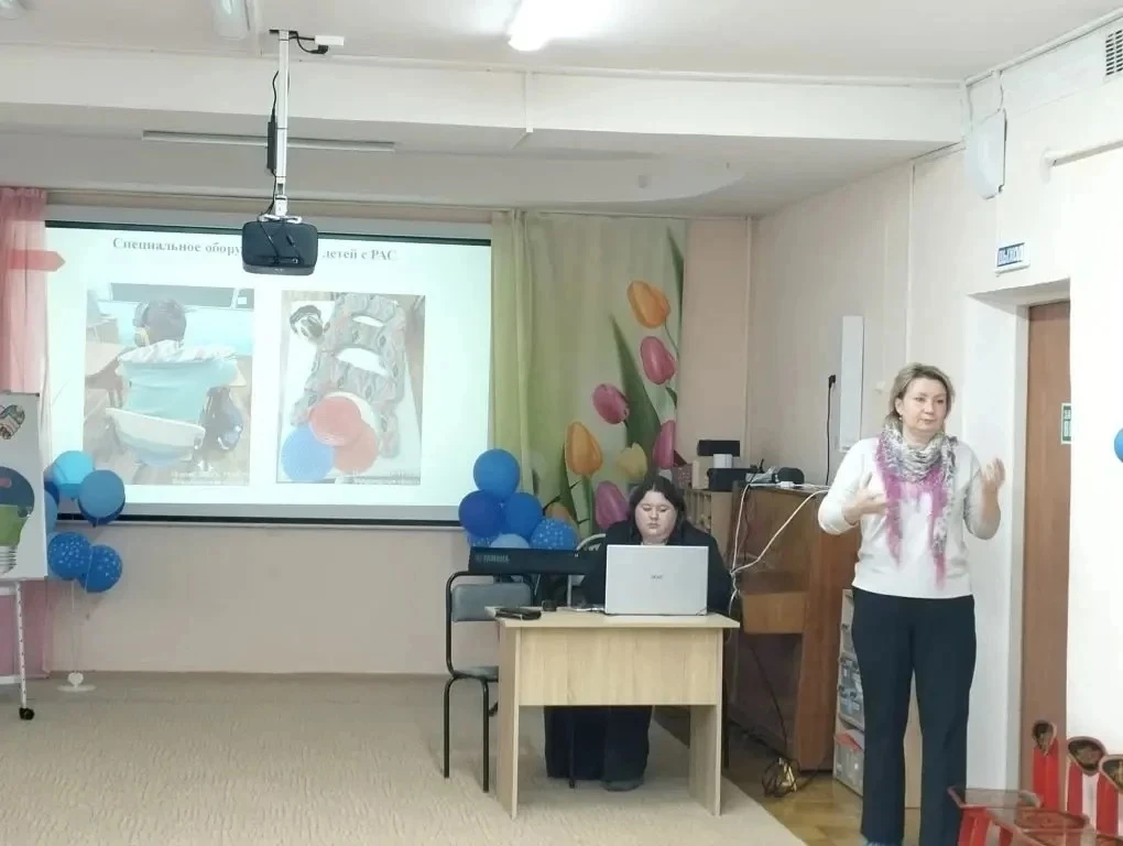 Важнейшую тему помощи семьям с детьми с особенностями развития осветил старший воспитатель Образовательного центра № 8 (детский сад № 110) Елена Шишканова.