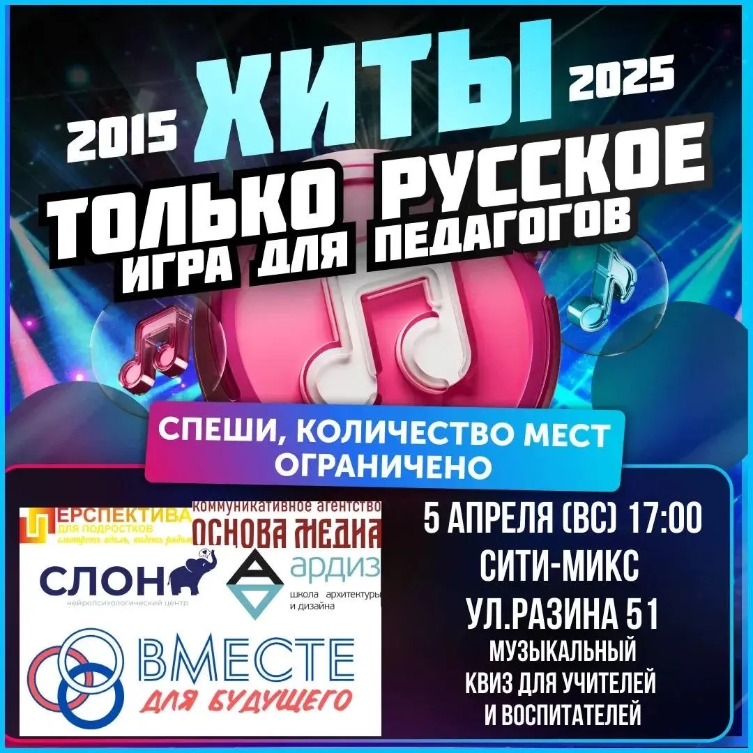 Приглашаем вас на бесплатный музыкальный квиз для учителей и воспитателей от проекта «Вместе для будущего»— в знак признания и уважения к вашему труду.