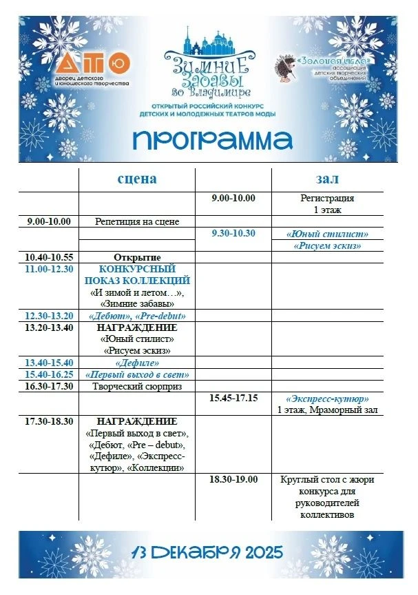 👍Уже завтра во Дворце детского юношеского творчества г.Владимир откроется Всероссийский конкурс детских и молодёжных театров моды «Зимние забавы».
