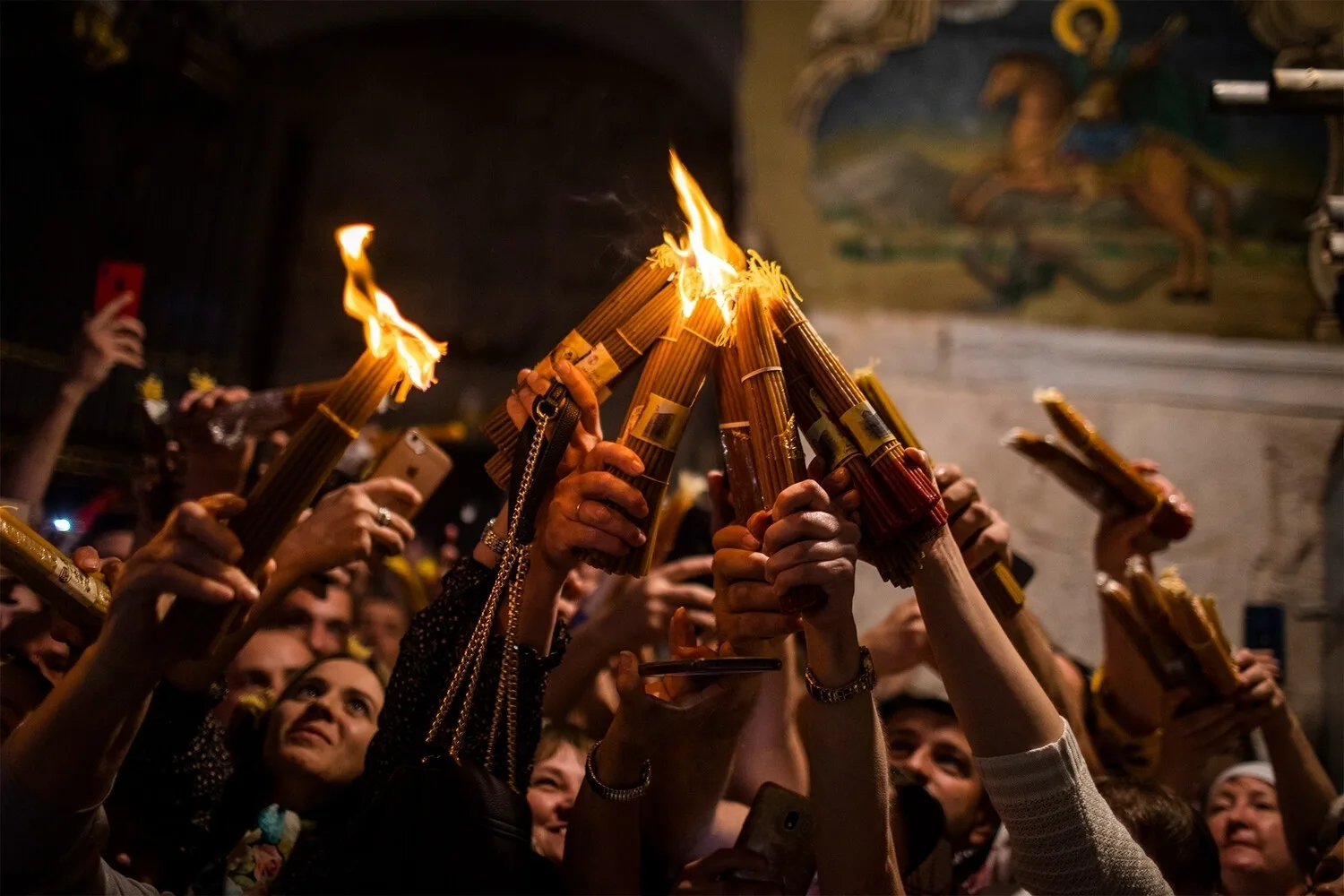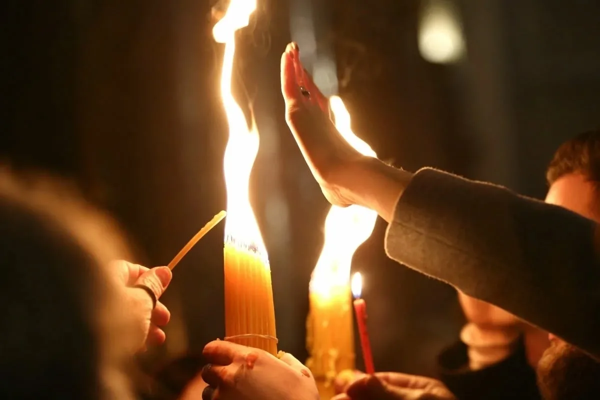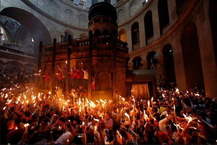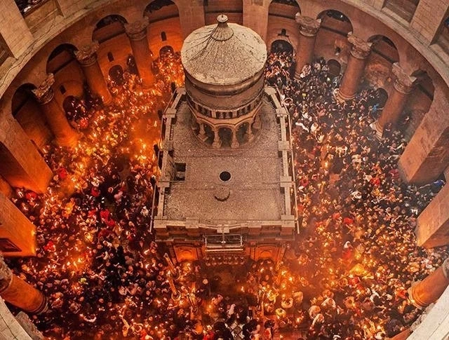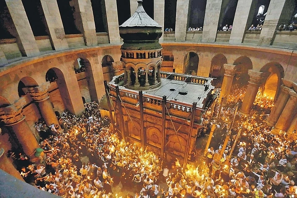 Благодатный огонь сошел в храме Гроба Господня в Иерусалиме.