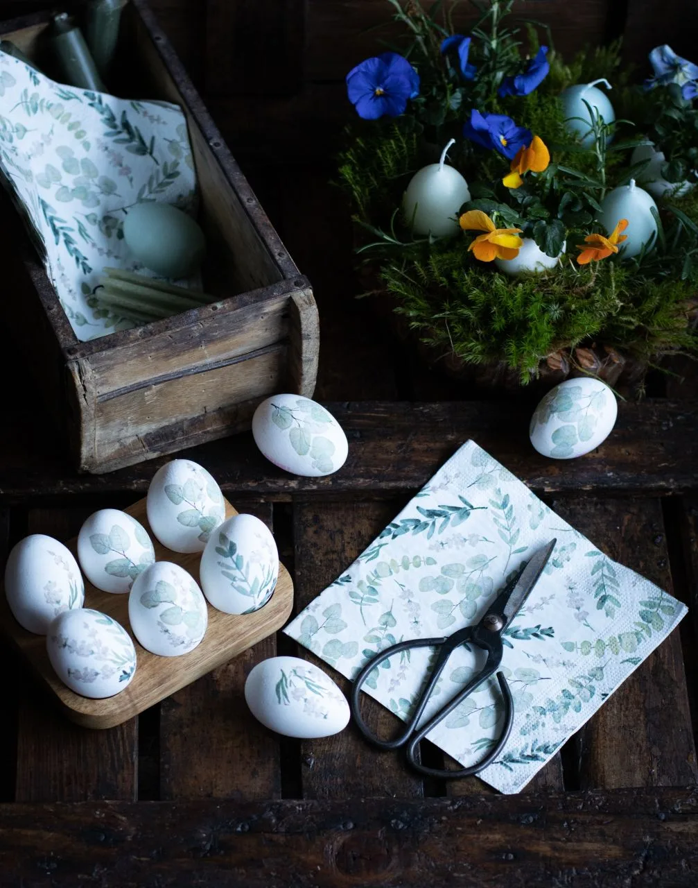 Варёные яйца + красивые салфетки + яичный белок.