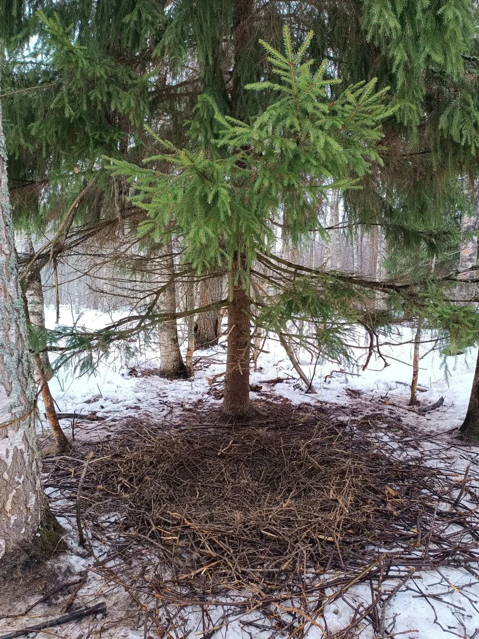 Представьте: в зимнем лесу под большой елью — уютное сооружение из сухих веток. В нём тесно прижавшись друг к другу спят кабаны, спасаясь от мороза. Это не случайная куча хвороста, а продуманное убежище — с хорошим обзором, надёжной подстилкой и даже «запасным вариантом» на случай непогоды.