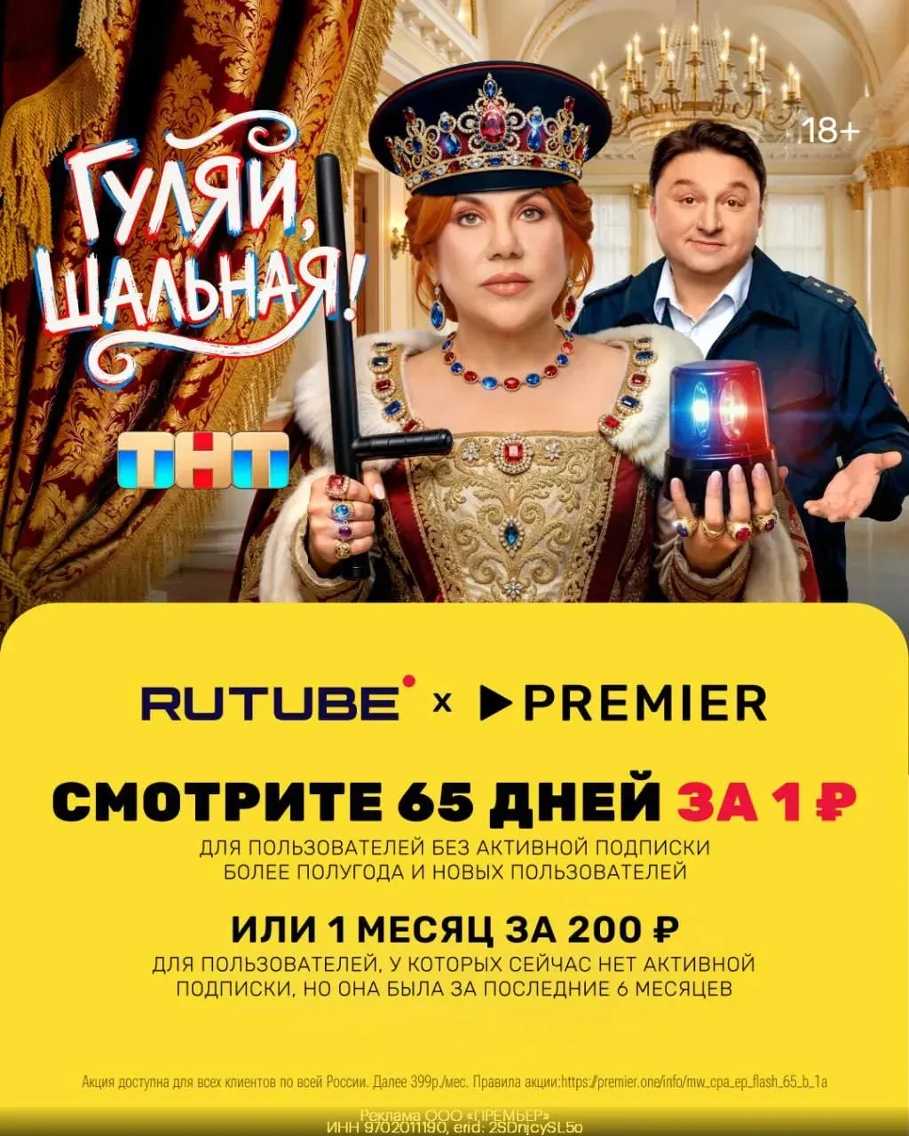 RUTUBE 🍿 х PREMIER 🎥 65 дней подписки за 1₽!