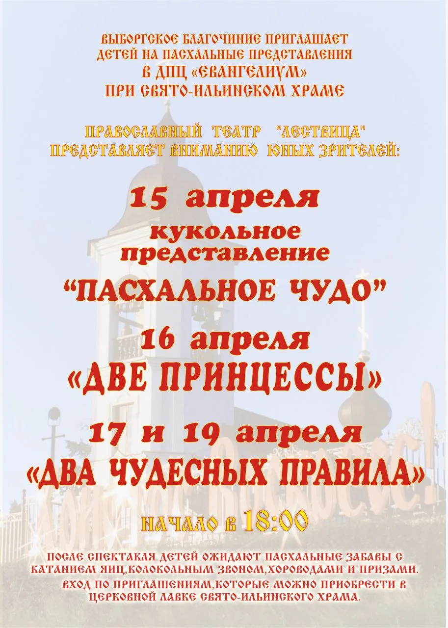 Праздничные пасхальные гуляния в Выборге пройдут 12 апреля на Соборной площади. Начало в 12:00. Приходите всей семьёй!