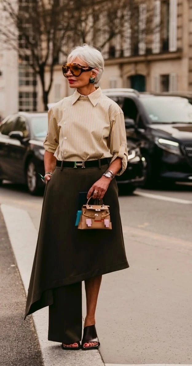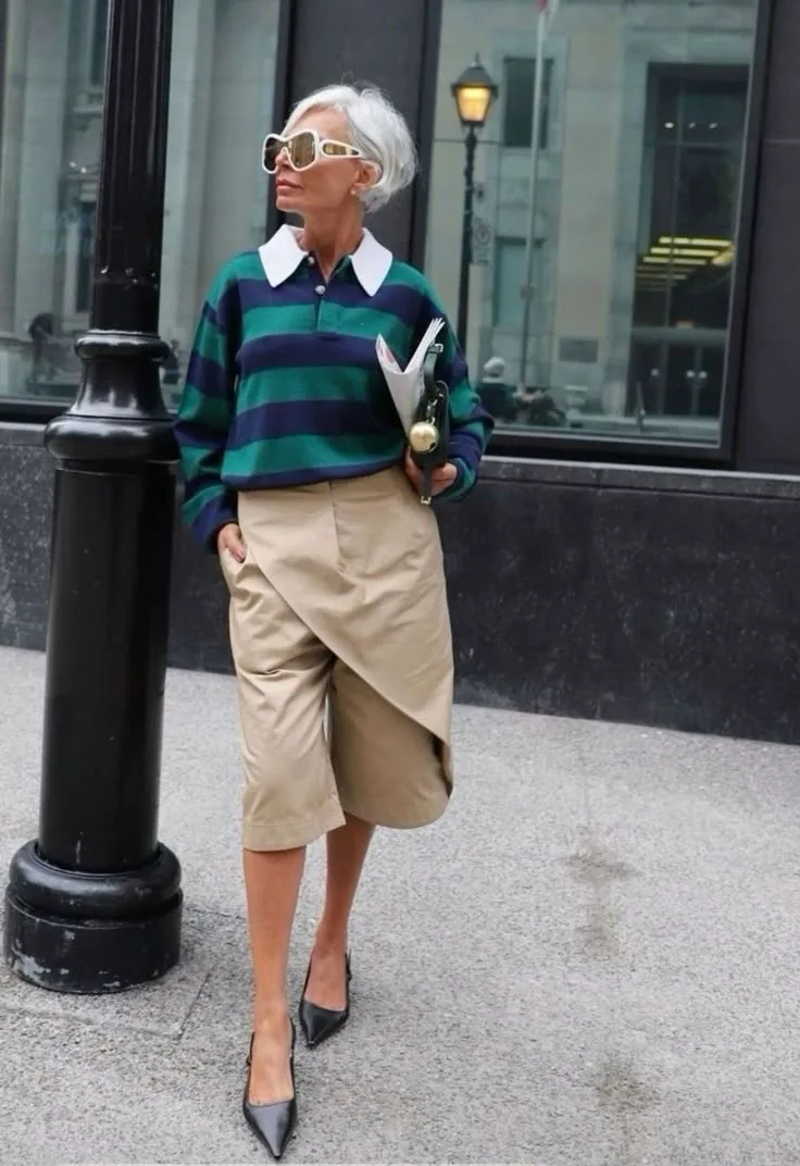 ✅Горизонтальная и вертикальная в одном образе (например, жакет + юбка) смотрятся модно, если держать их в одной палитре.