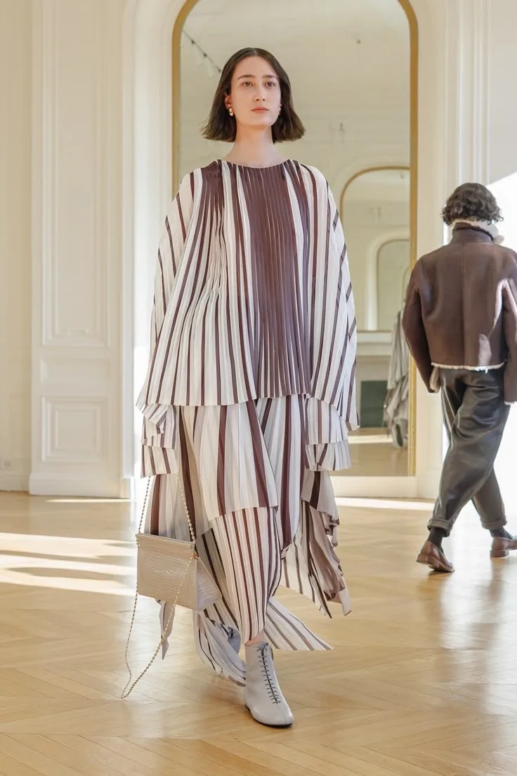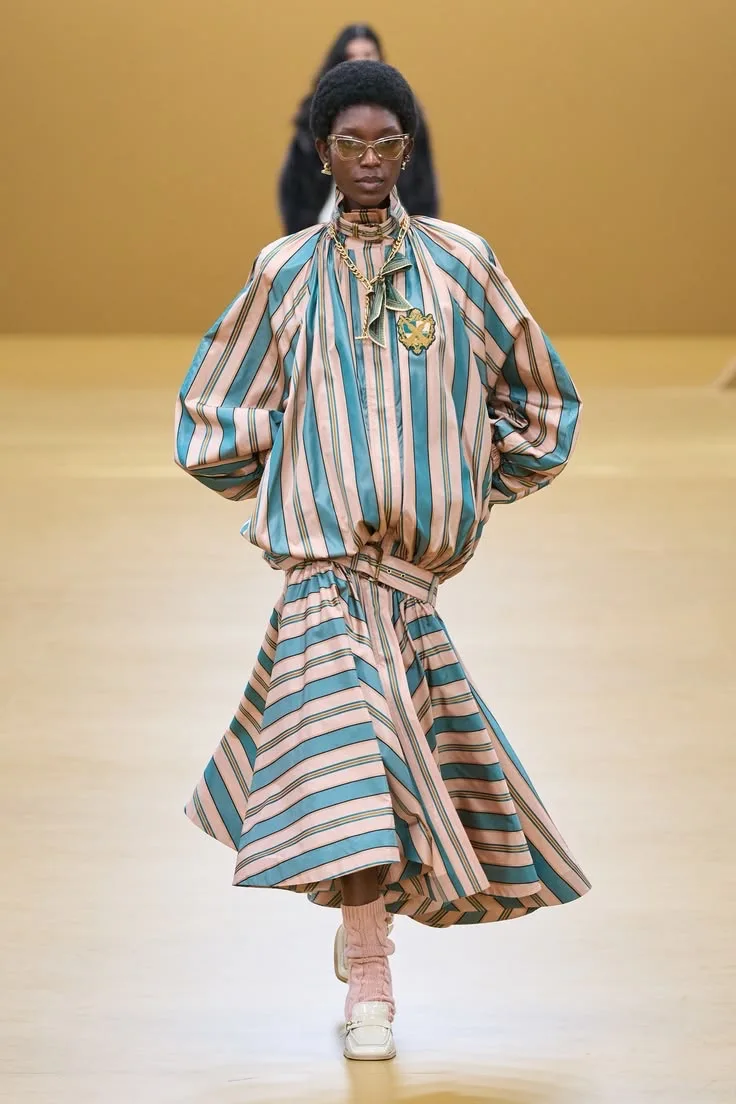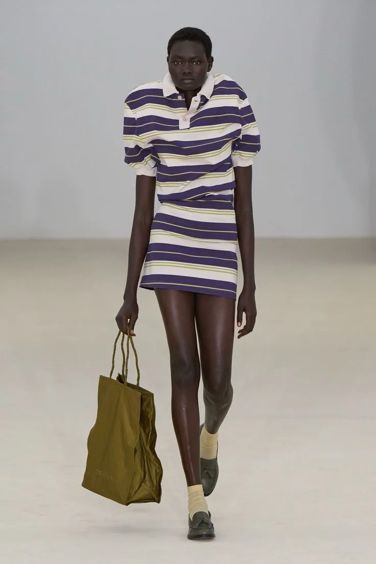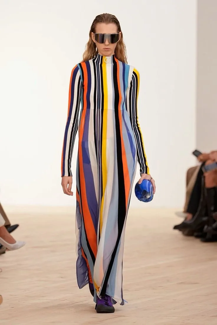 Цветные, черно-белые, разной ширины, иногда это сочетание вертикальной и горизонтальной полоски. Бренды на подиумах в показах весна ‘26года показали много разнообразных полосок.