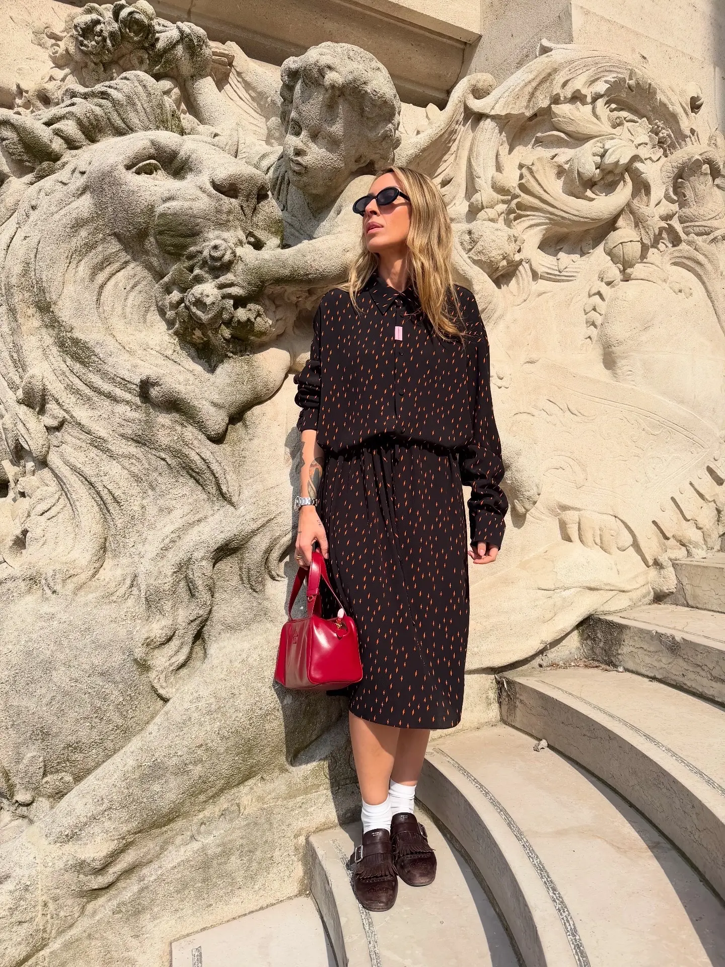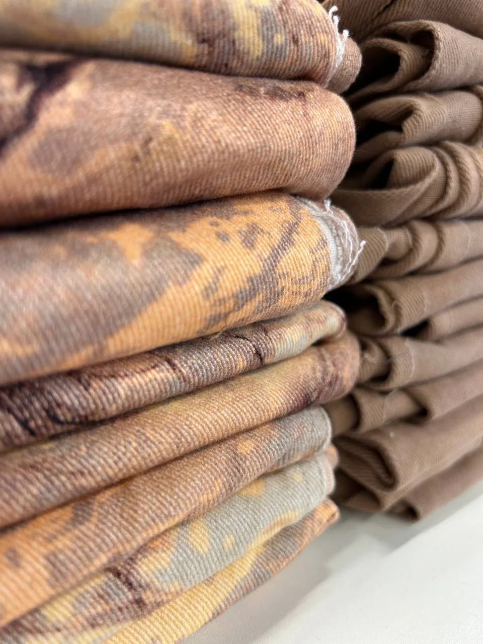В нашей коллекции мы тоже отталкивались от марсианской палитры: песочные оттенки — это пыльные бури, теплые коричневые — железо в почве планеты, а темные «вареные» элементы — следы марсианского рельефа, как будто выжженного ветром и временем.