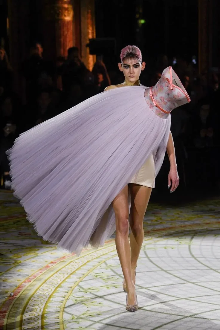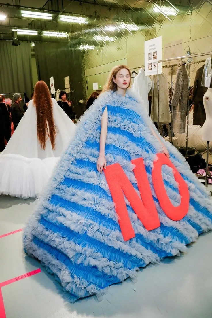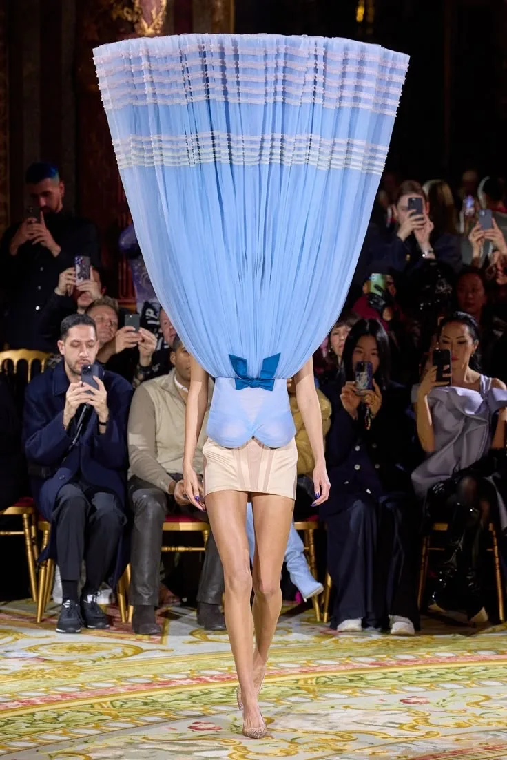 Schiaparelli решили показать процесс создания кутюрного платья, в котором недавно выходила Зендея. Итак, использовали 27 оттенков синего. На создание платья было потрачено больше 8 000 часов ручного труда. Перья, кстати, не настоящие, а специально сделанные из шелка. Так вот их ушло на декор 65 000 штук. Хочется надеяться, что никто в процессе работы не ослеп.
