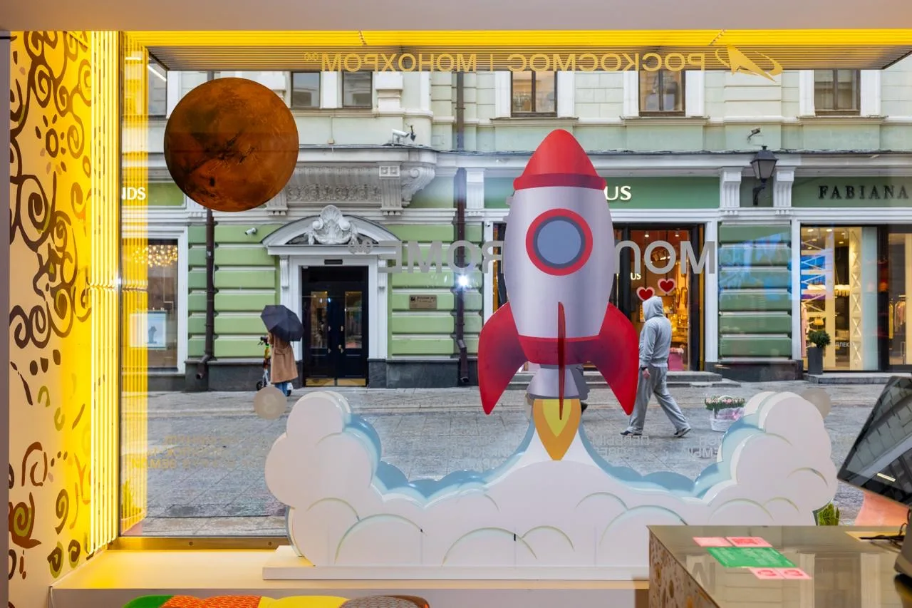 К Неделе космоса в России и этой важной для нас коллаборации мы оформили витрины всех магазинов так, чтобы вы почувствовали атмосферу космоса: гордости, смелости и уверенности в человеческих возможностях.