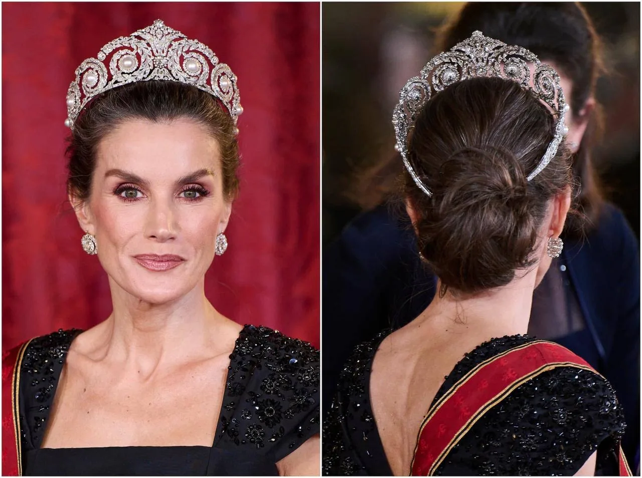 Королева Летиция появилась на торжественном ужине в честь президента Германии в тиаре Cartier 1907 года. Это одно из самых ценных украшений в коллекции королевской семьи, и в нем не выходили на официальные мероприятия в течение семи лет