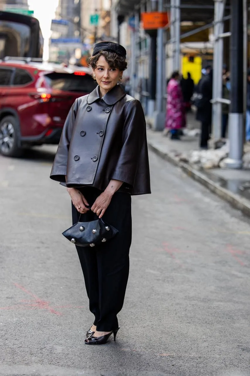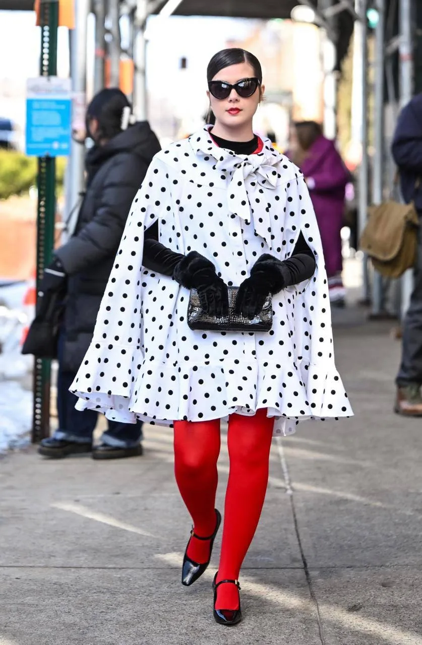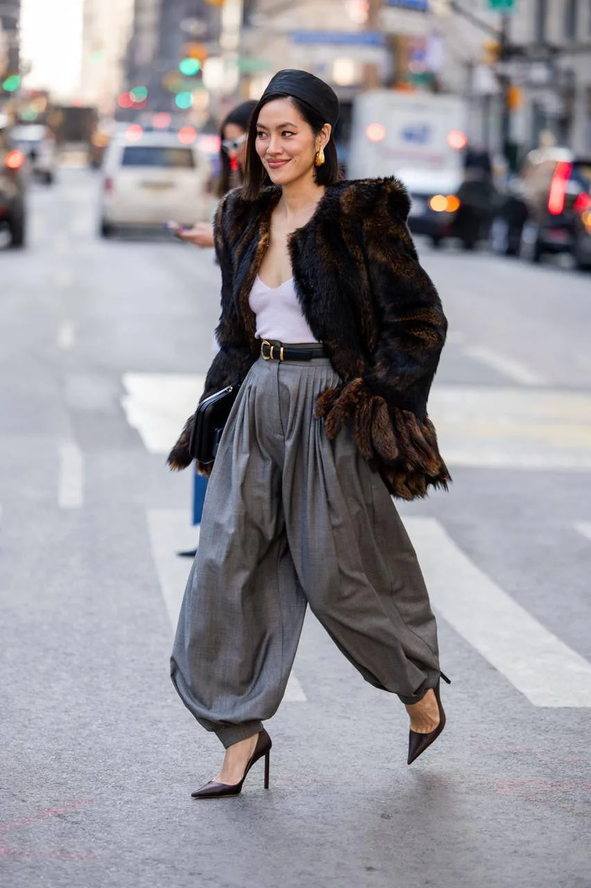 Образы гостей показов New York Fashion Week — искусственный мех, шляпки-таблетки, брюки гаучо, галстуки и принт в горошек