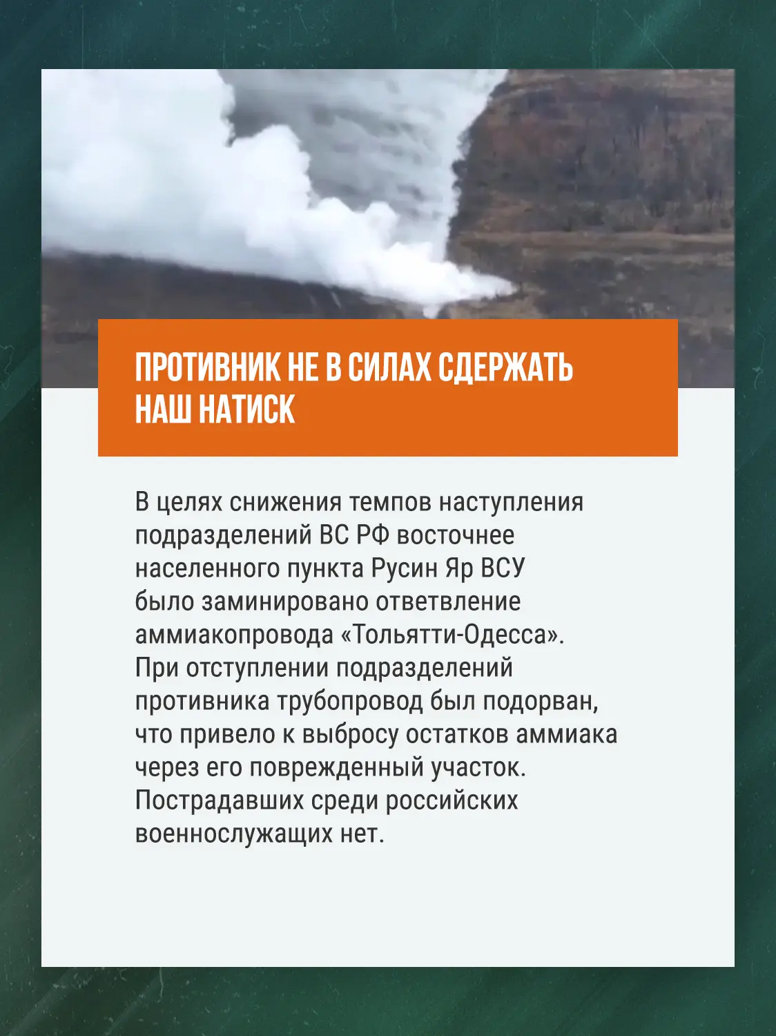 ▪️ ВСУ потеряли до 165 военнослужащих, танк, боевую бронированную машину и 13 автомобилей. Уничтожены склад боеприпасов и четыре склада материальных средств.