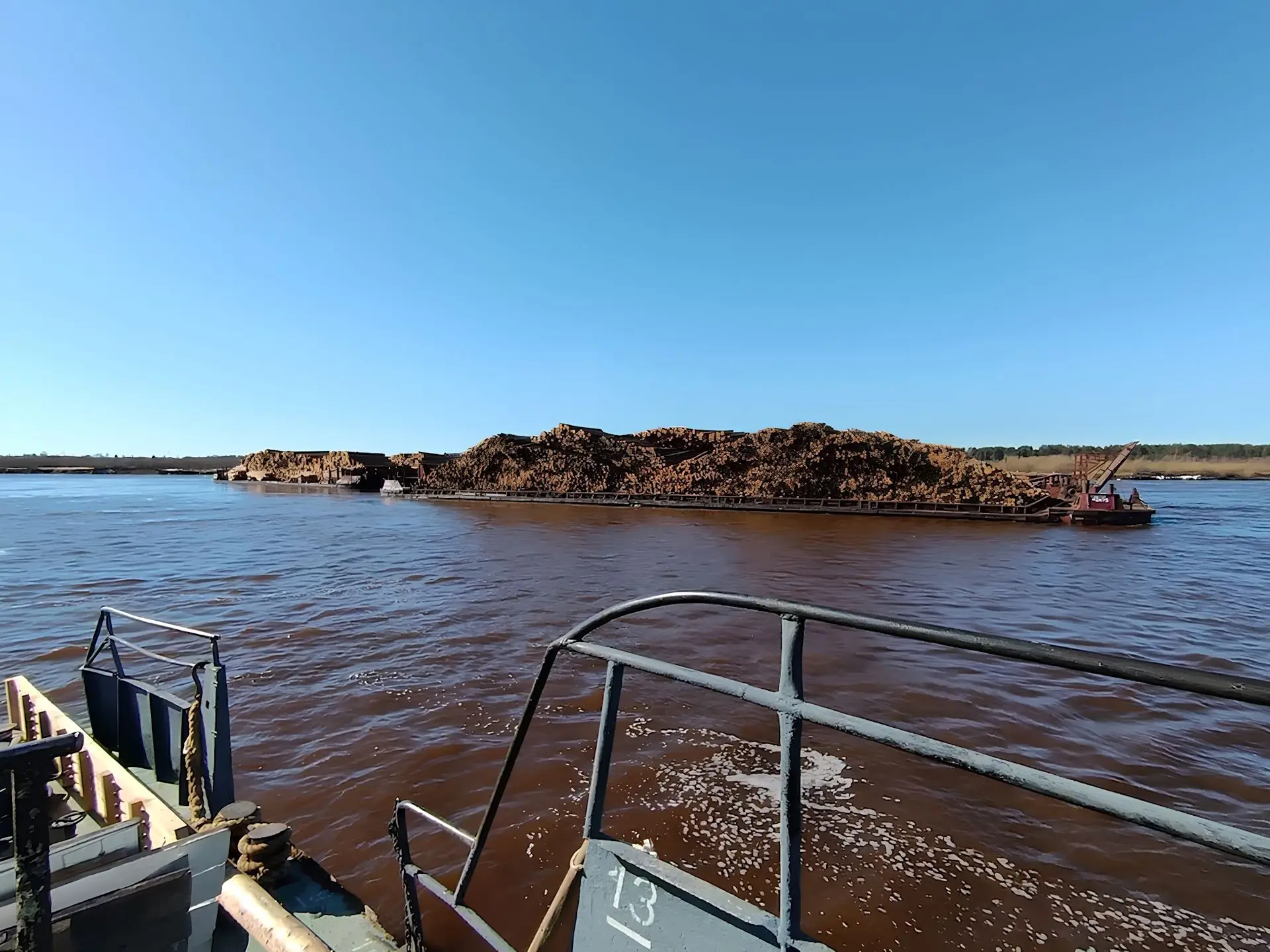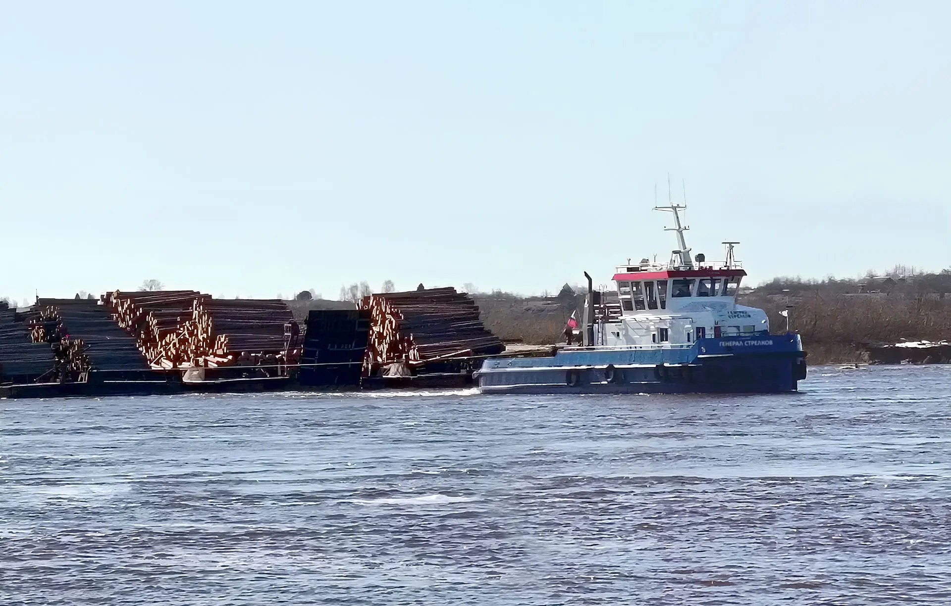 Первые транзитные суда с караванами барж двинулись по реке Северная Двина до Архангельска.