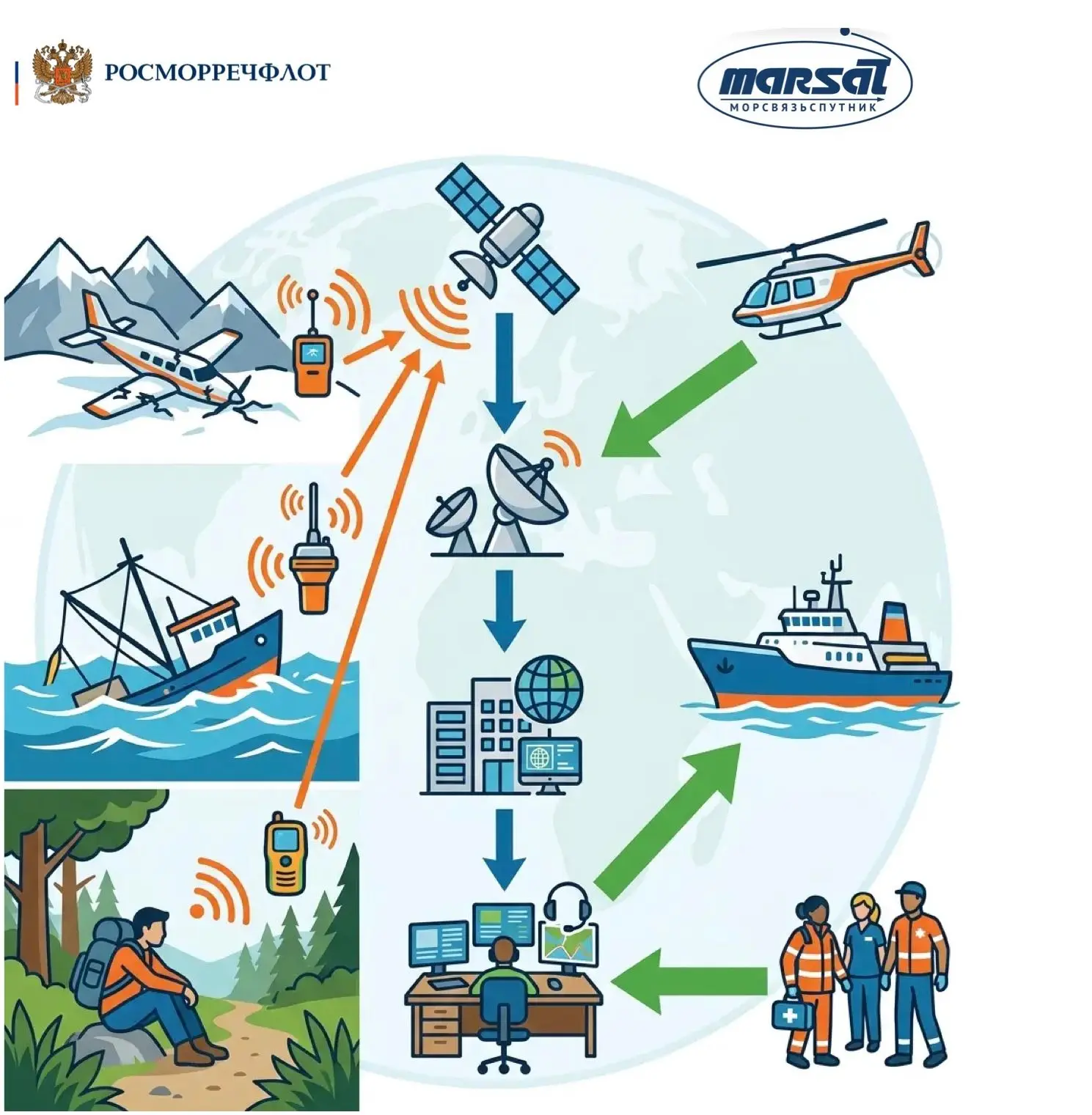 · Информация о координатах бедствия — в поисково-спасательные службы. Всё это происходит за считанные минуты.