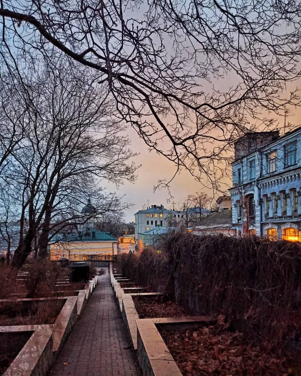 Это тихое место на Ивановской горке с лестницами, террасами и, главное — потрясающими видами.