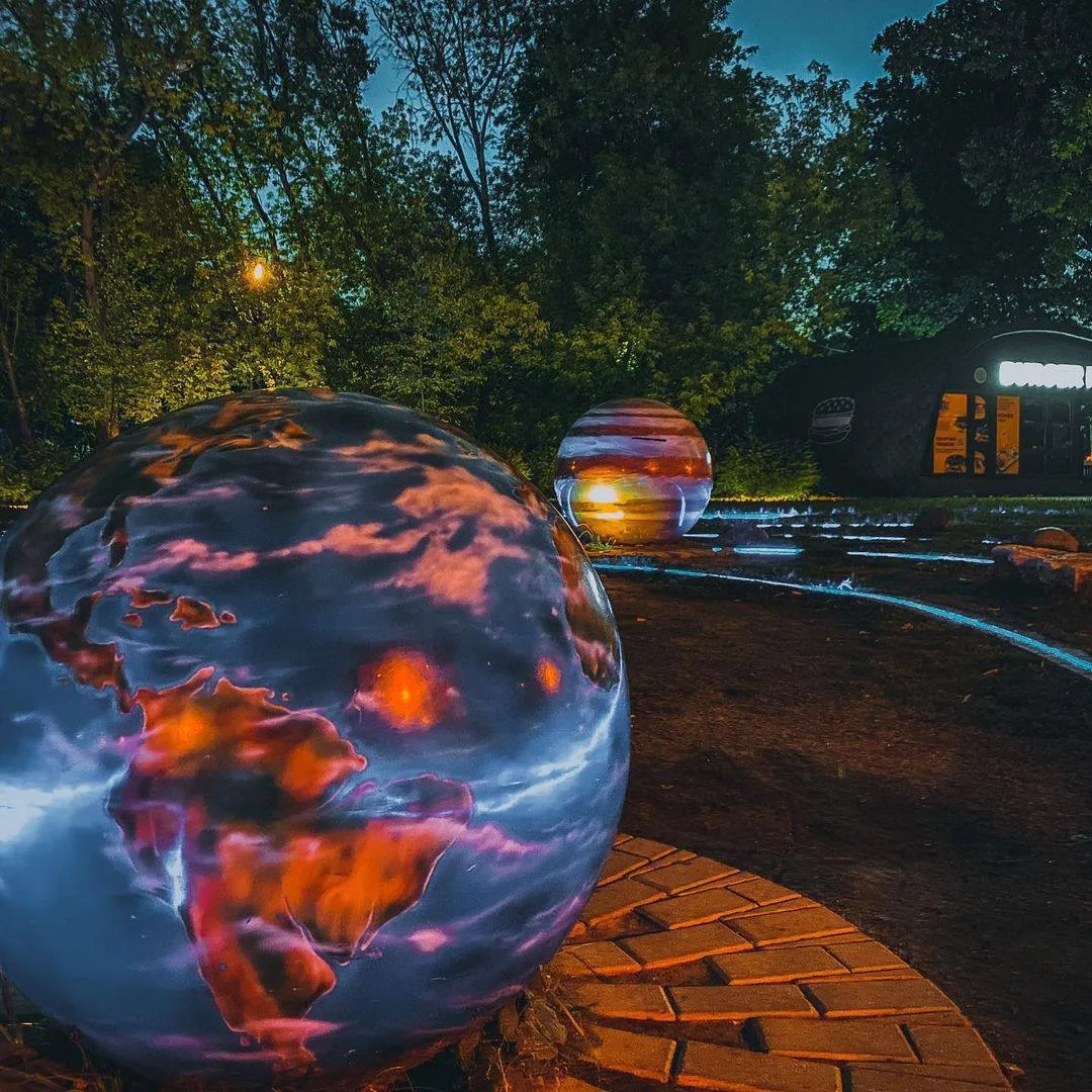 Необычная прогулочная аллея в парке Парк Сокольники, посвящённая космосу и астрономии. Пространство оформлено как масштабная модель Солнечной системы — прогуливаясь по дорожке, можно «путешествовать» от планеты к планете.
