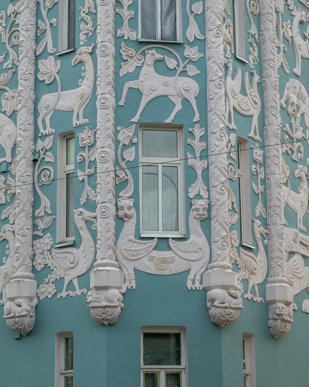 Построенный в начале XX века в стиле модерн, он задумывался как доходный дом, но превратился в настоящее произведение искусства. Барельефы вдохновлены древнерусской архитектурой.