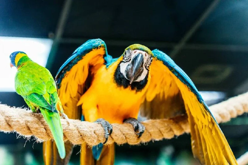 Здесь живёт более 100 ручных попугаев — от величественных ара до забавных неразлучников.