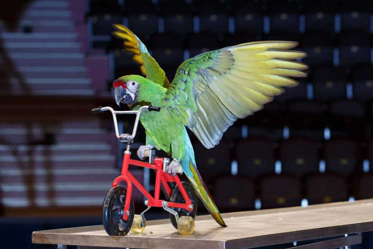 Гости смогут увидеть, как попугаи ездят на велосипеде, катаются на роликах, играют в баскетбол и многое другое.