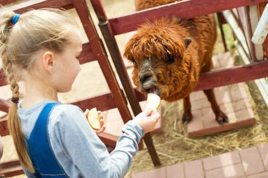 Здесь можно покормить альпак с рук, поиграть в детской зоне и даже посмотреть фильм об этих животных.