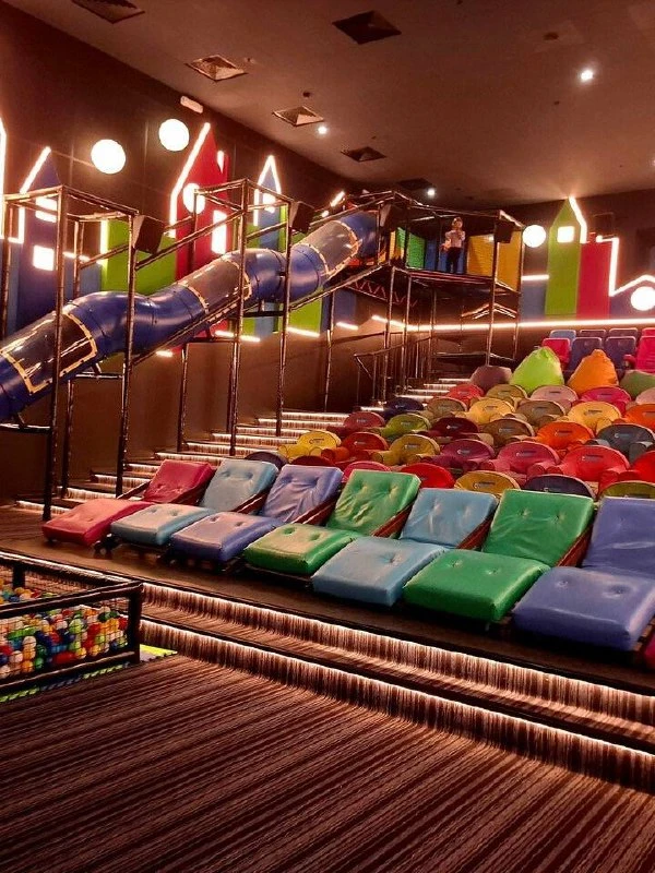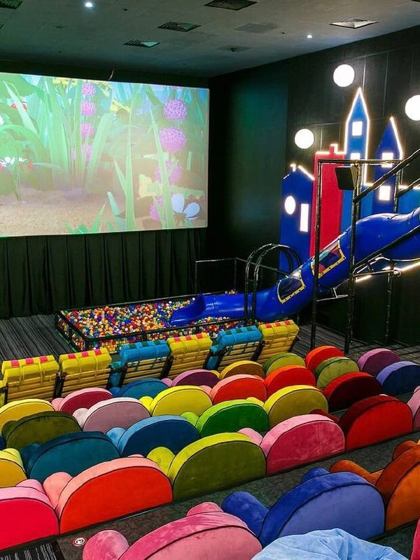 В «Синема Стар» есть специальные уютные залы для семейного просмотра с мягкими пуфиками, креслами-мешками, горкой и бассейном с шариками.