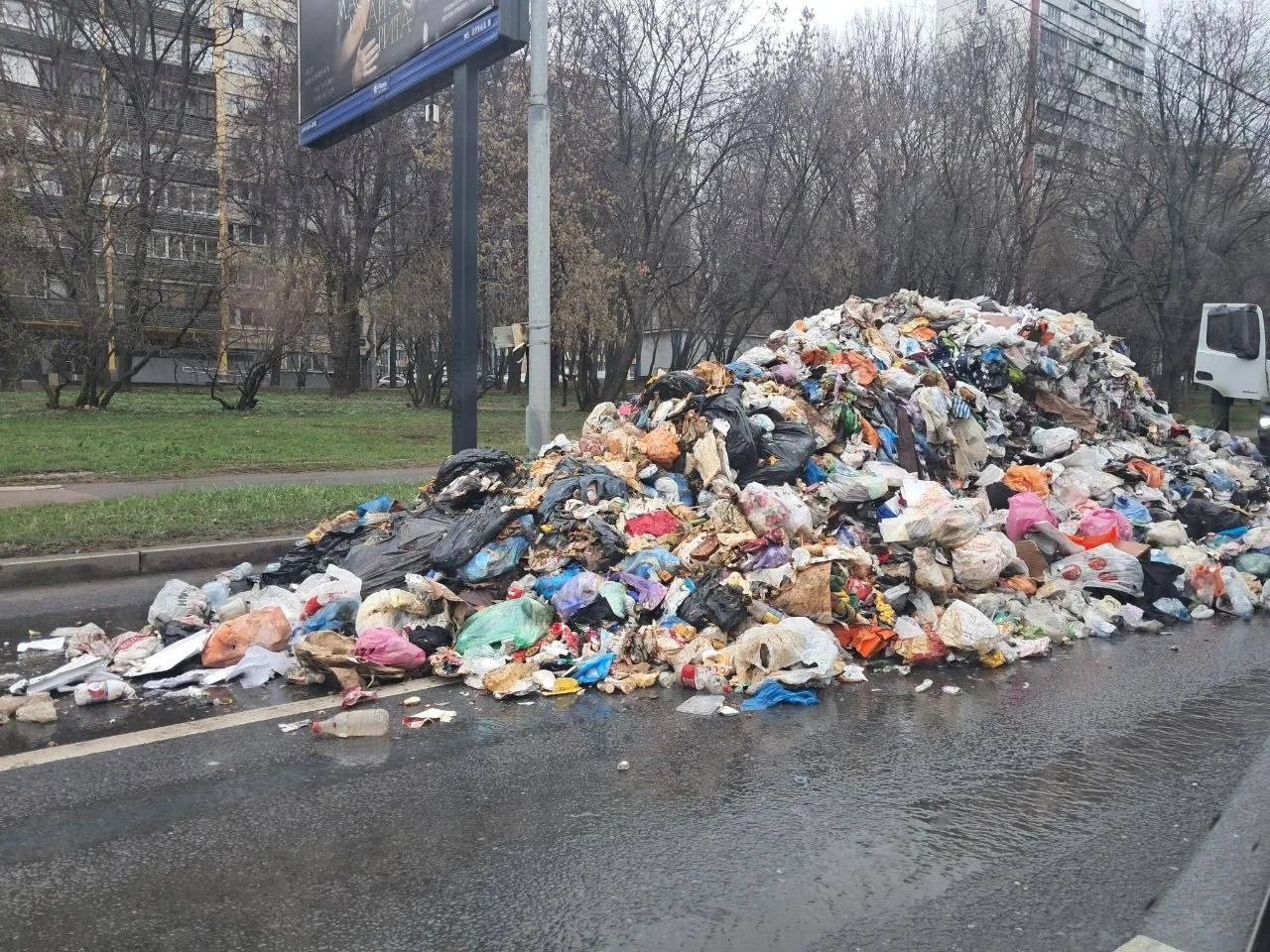 На проспекте Вернадского недалеко от перекрёстка с улицей Лобачевского мусоровоз «потерял» груз