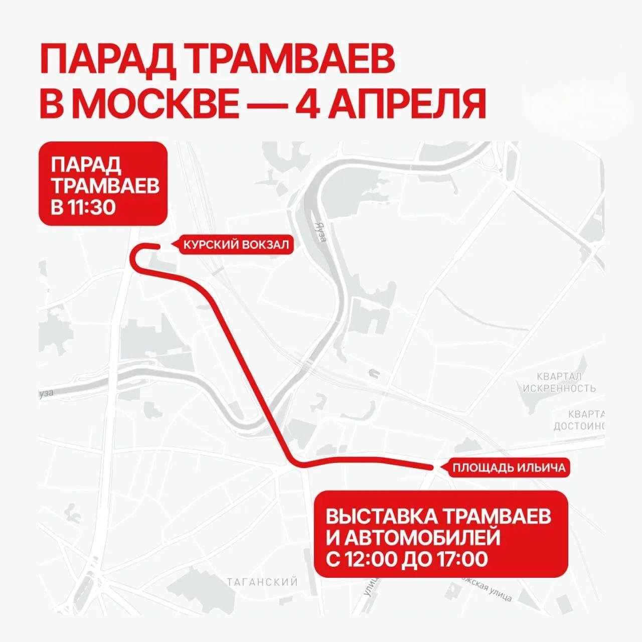 Парад трамваев начнется в 11:30. Колонна исторических вагонов проедет по новому маршруту: от Курского вокзала до улицы Сергия Радонежского. С 12:00 до 17:00 там пройдет масштабная выставка ретротранспорта. Посетители смогут зайти в салоны трамвайных вагонов, увидеть автомобили разных поколений и сделать памятные фотографии.
