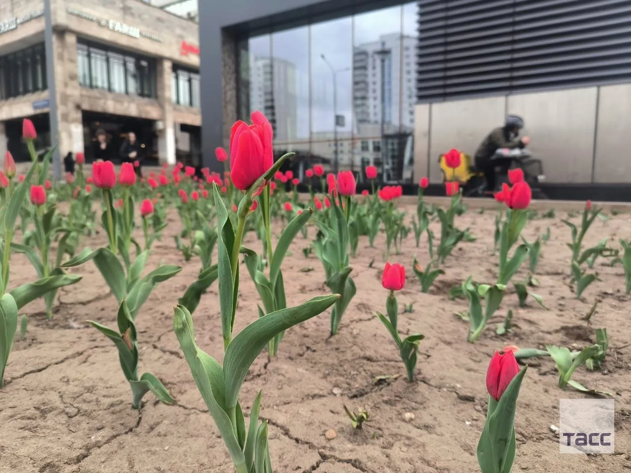 ▶️ Первые тюльпаны распустились на городских клумбах.