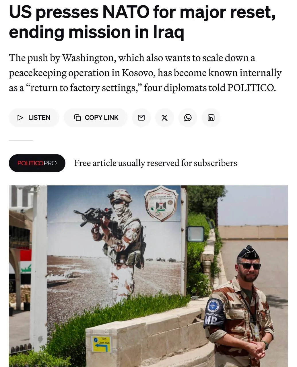 ⚡️США требуют от НАТО сократить зарубежные миссии и ограничить участие Украины в саммите, — Politico.