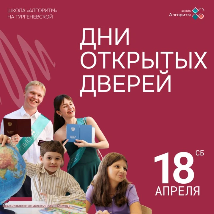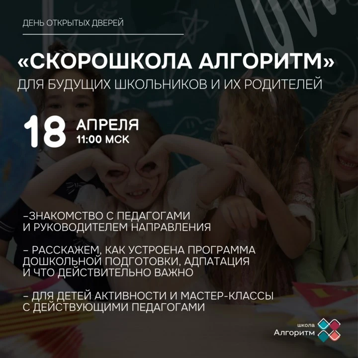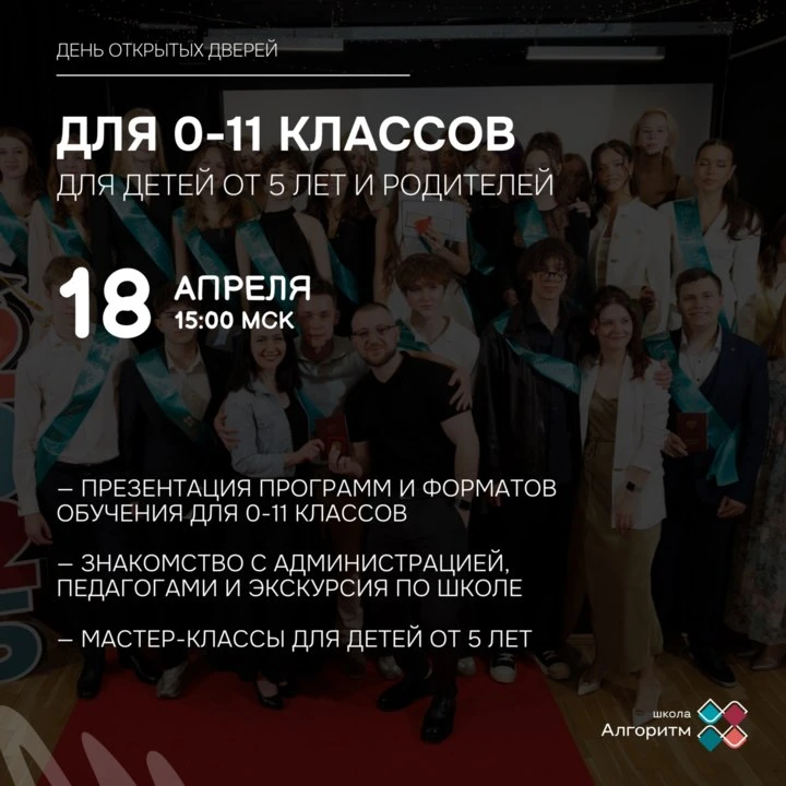 18 апреля школа «Алгоритм» приглашает детей и родителей познакомиться со школой, программами и педагогами!
