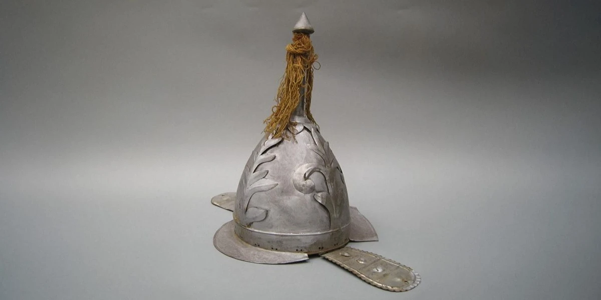 Шлем сделан из тонкой белой жести, легкий, с декоративными элементами и красно-бурым «хвостом» — стилизован под античный. Судя по размеру, его носил молодой актер крепостного театра. Находка пополнит коллекцию бутафории XVIII века, которой славится музей-усадьба.