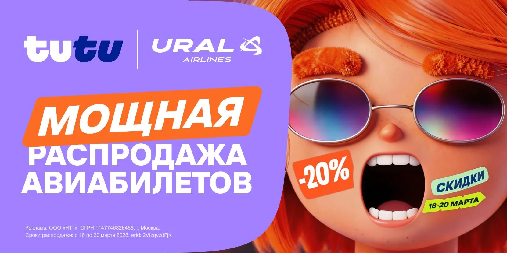 В сервисе путешествий Туту стартовала МОЩНАЯ распродажа авиабилетов на рейсы «Уральских авиалиний» со скидками до 20%.