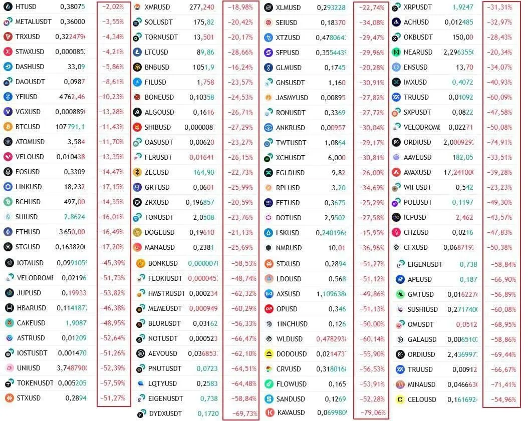 ⬇️ Практически все популярные криптовалюты за час обвалились на 30–60%