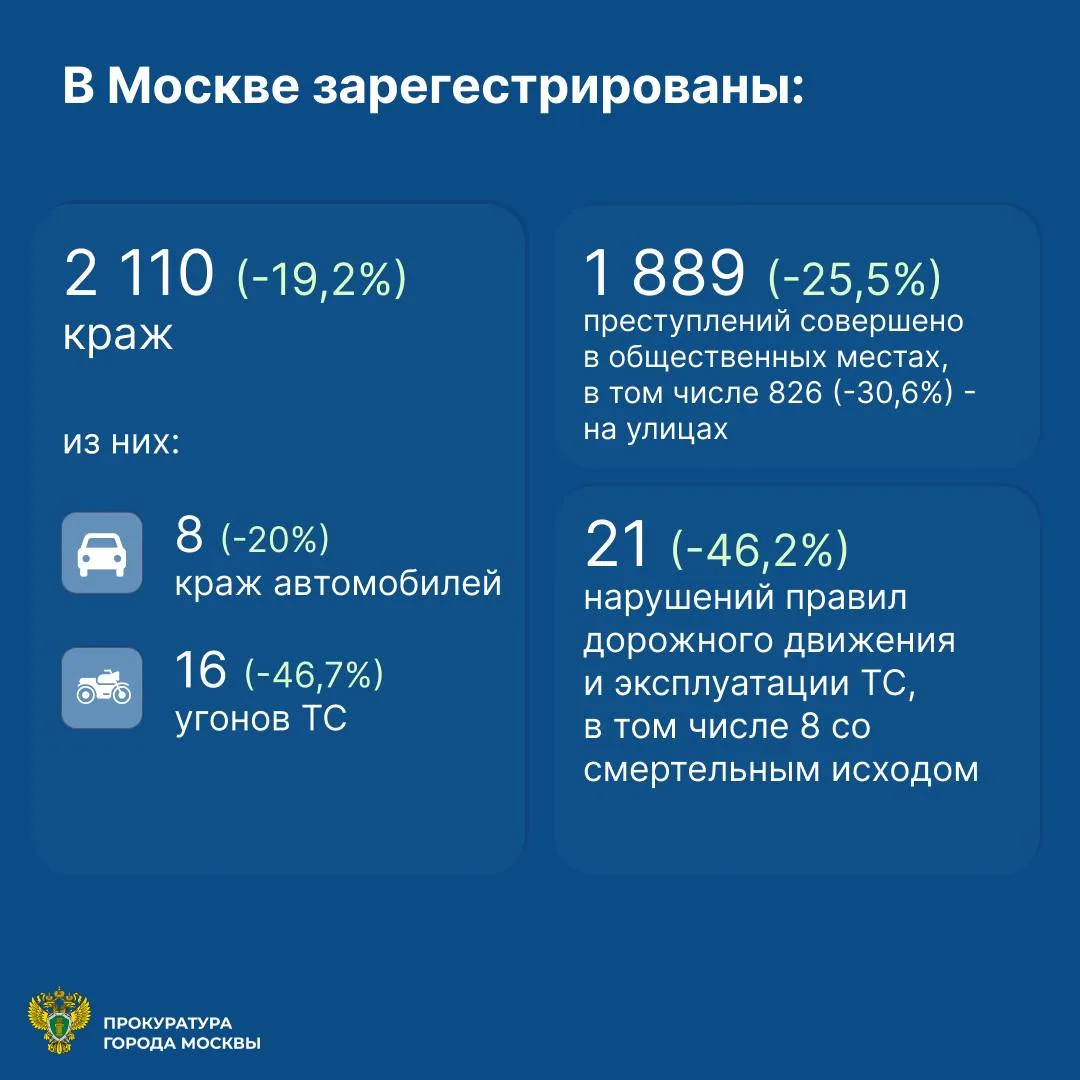 ⚡️ За январь 2026 года в Москве зарегистрировано 8 528 преступлений (-21,4%).